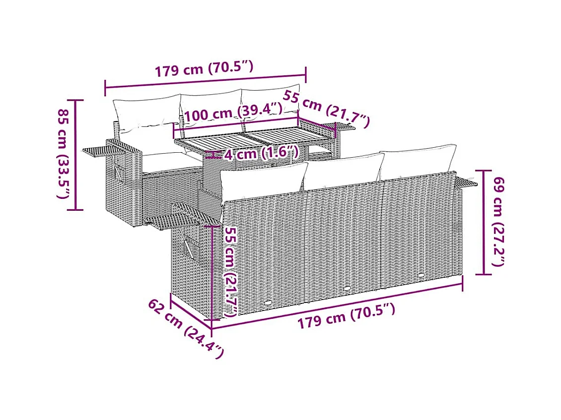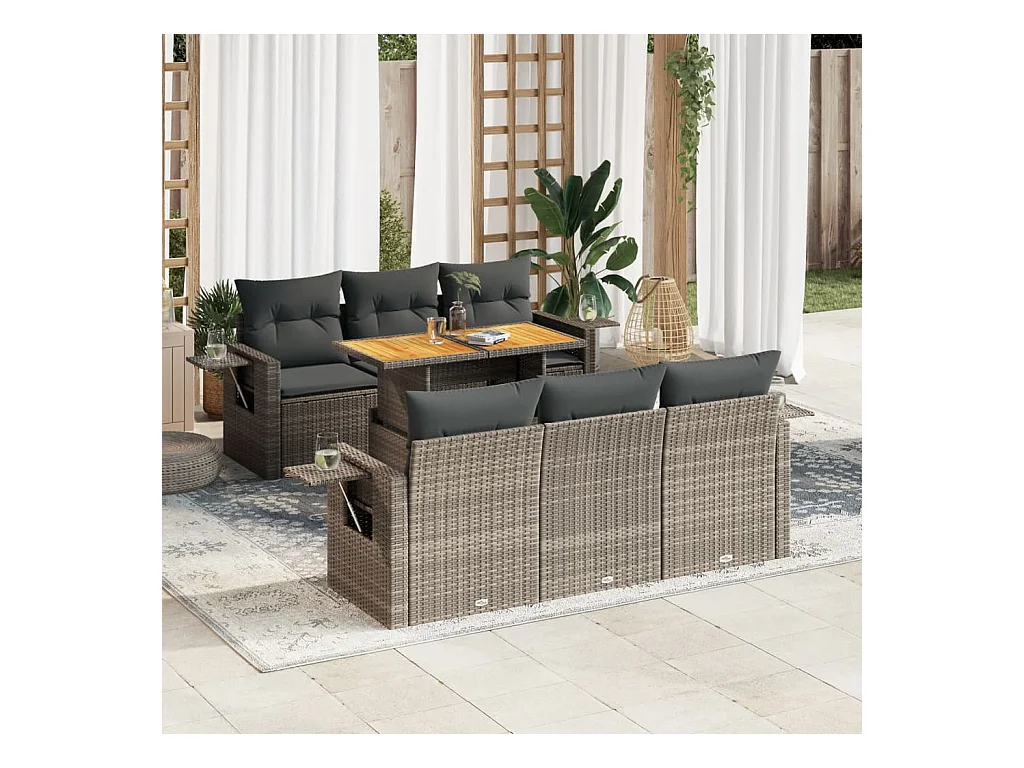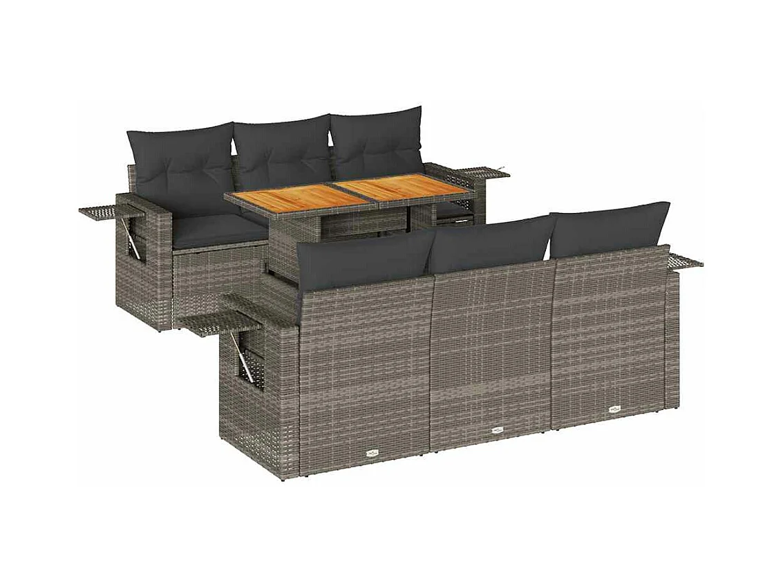 7-tlg. Garten-Sofagarnitur mit Kissen Grau Poly Rattan
