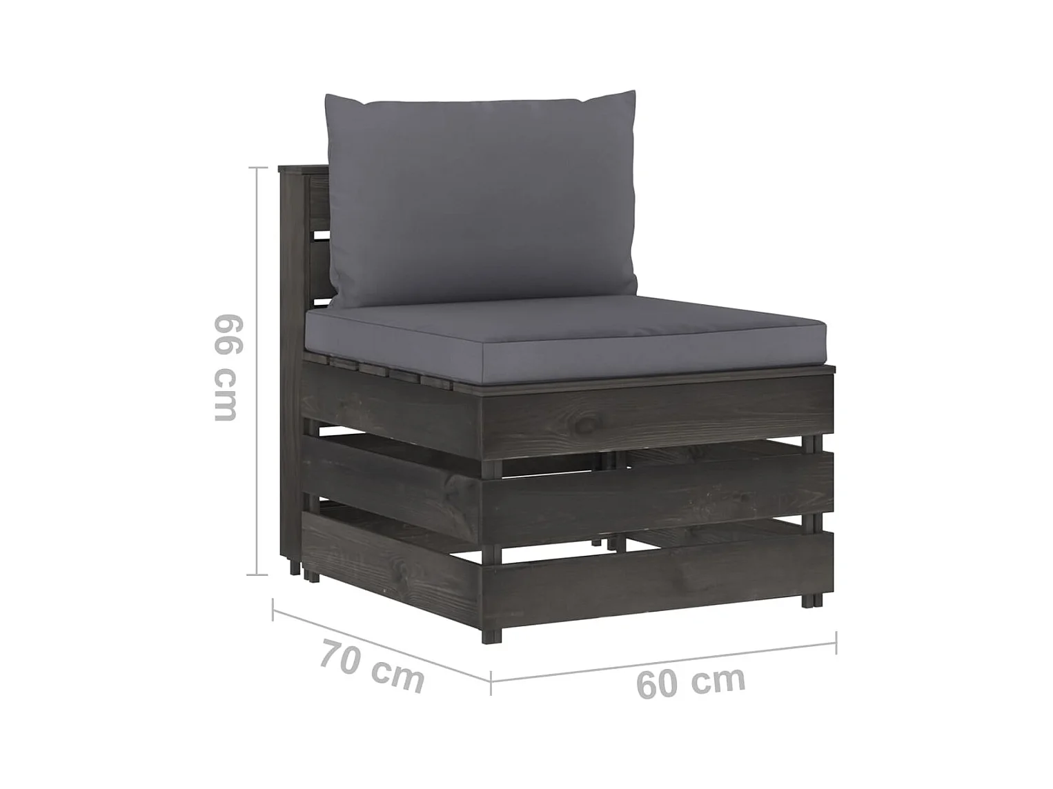 Modulares Mittelsofa mit Kissen Grau Imprägniertes Holz