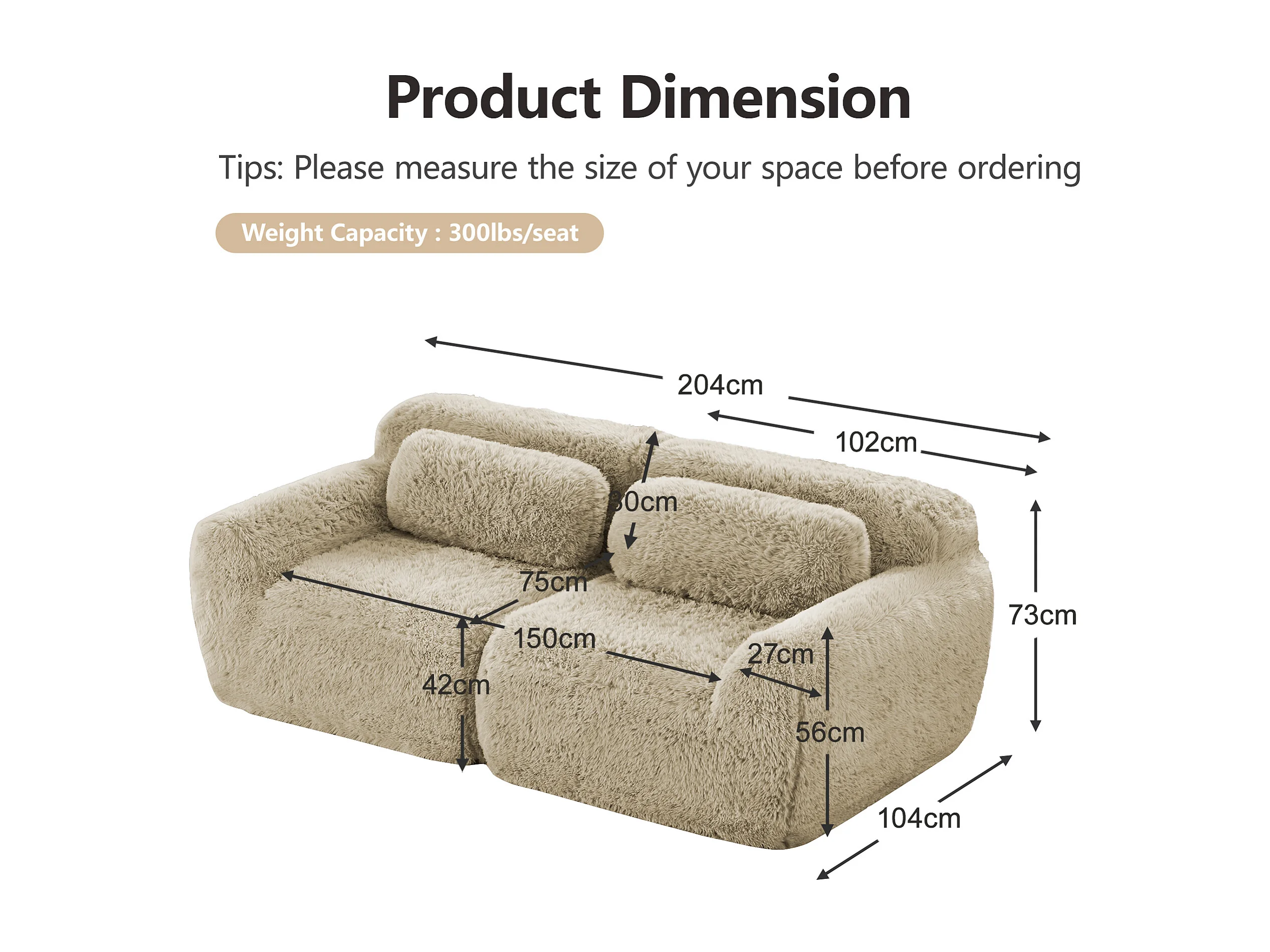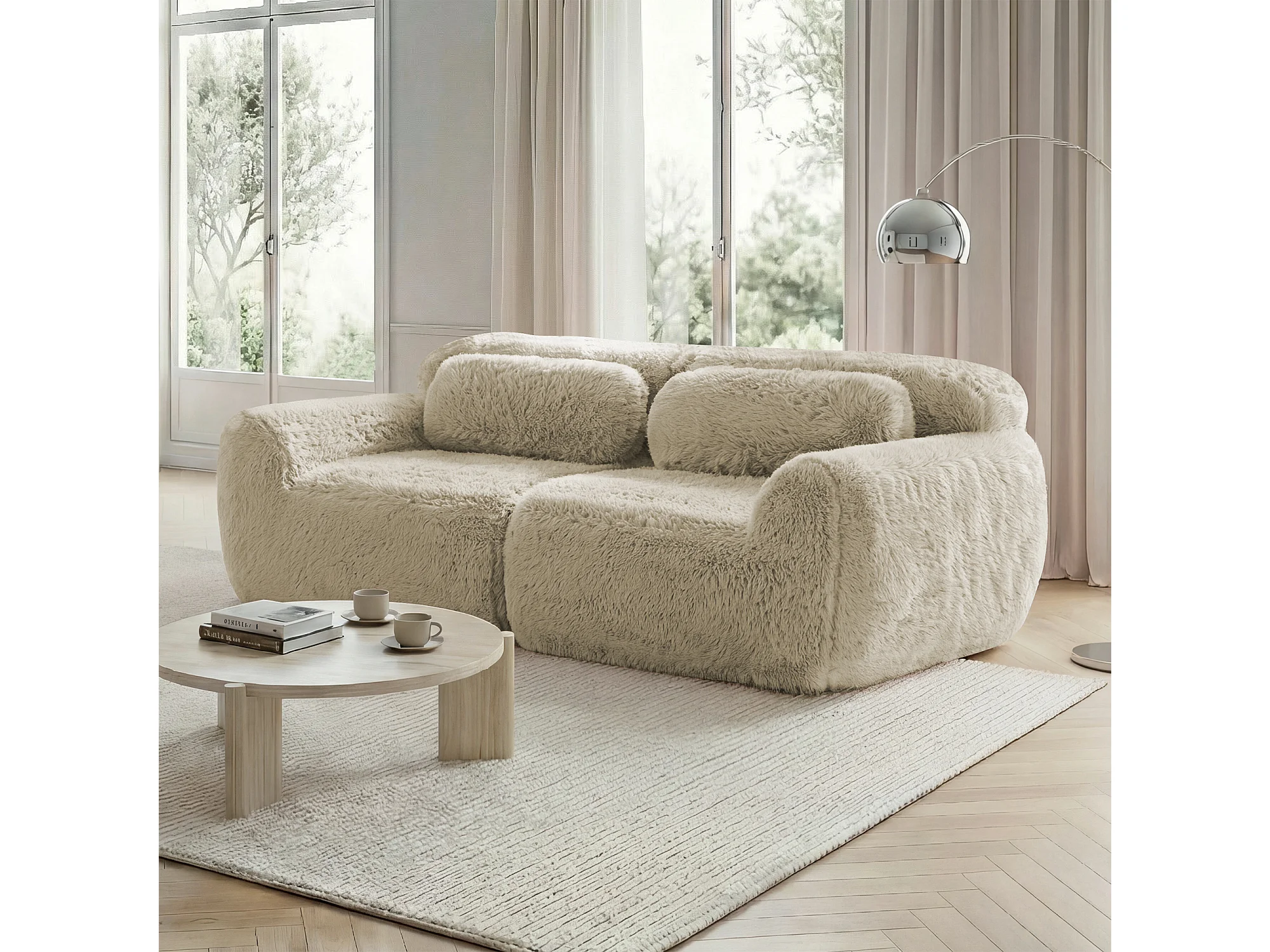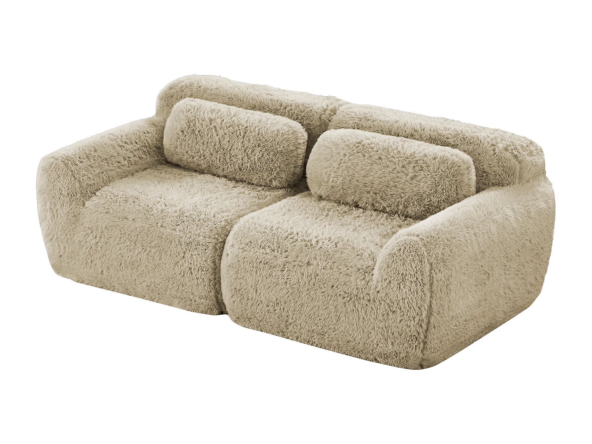 Modulares, rahmenloses 2-Sitzer-Sofa aus weichem Stoff mit Kissen – Farbe: Hellkhaki