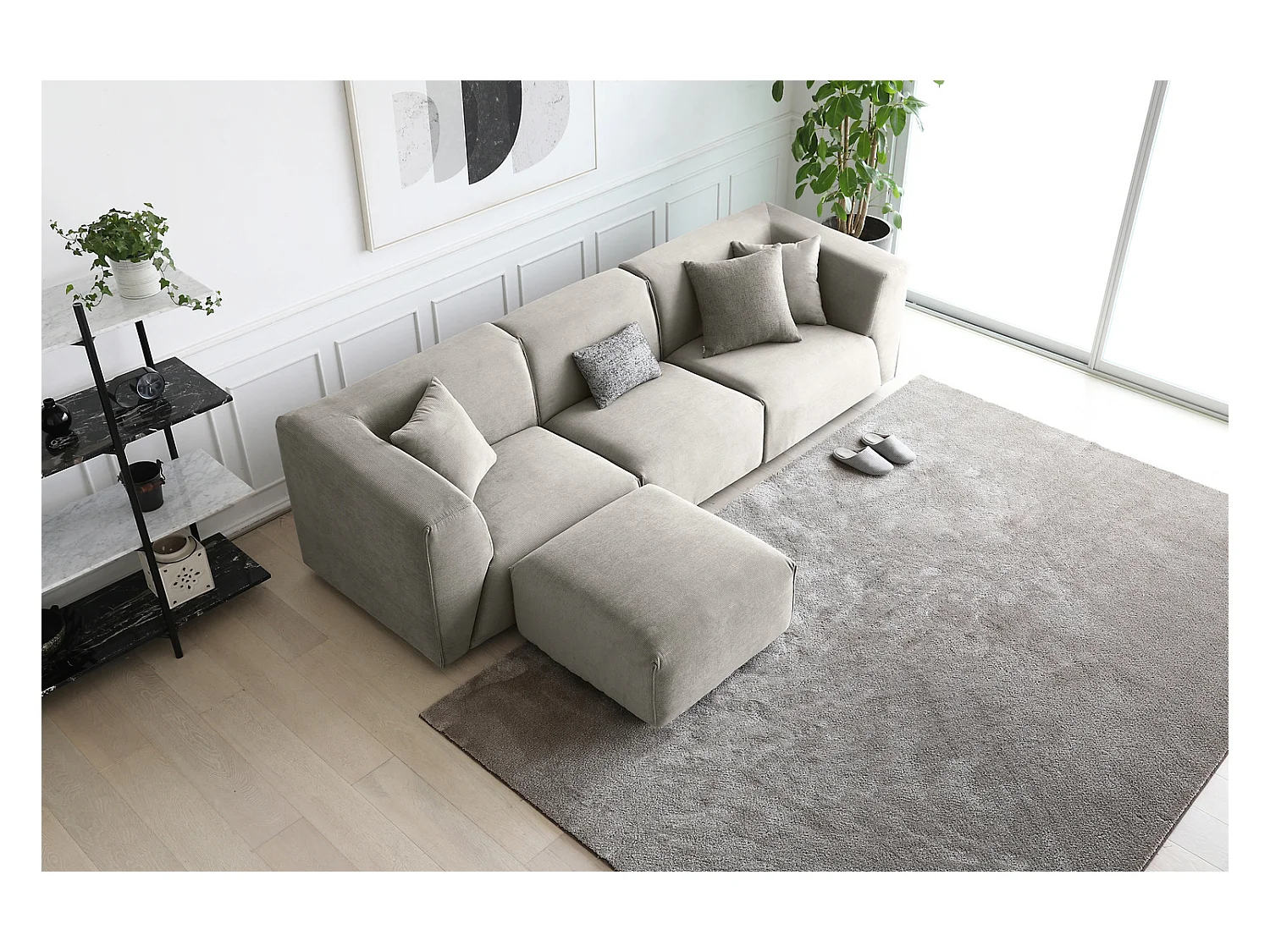 Modulsofa 3-Sitzer + 1 Hocker Cord hellgrau MONROE