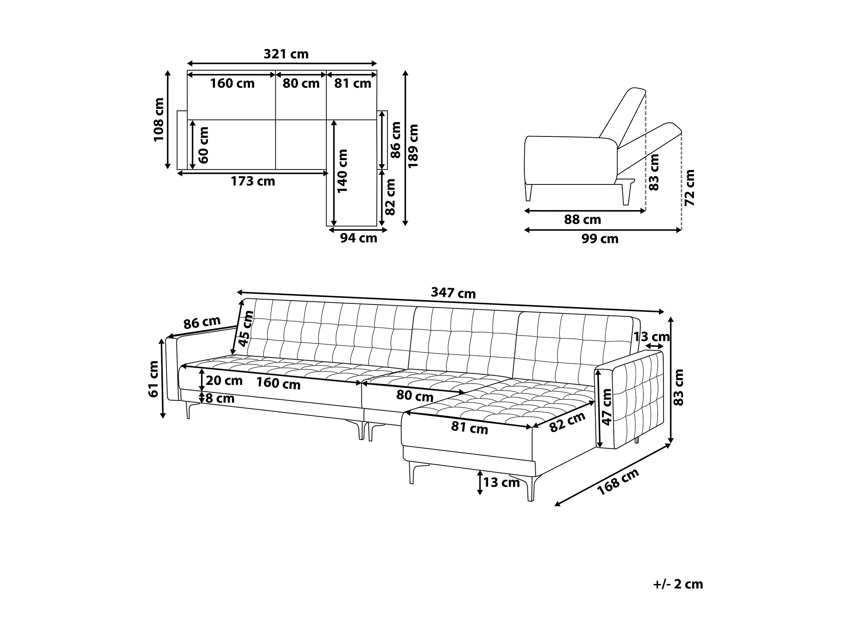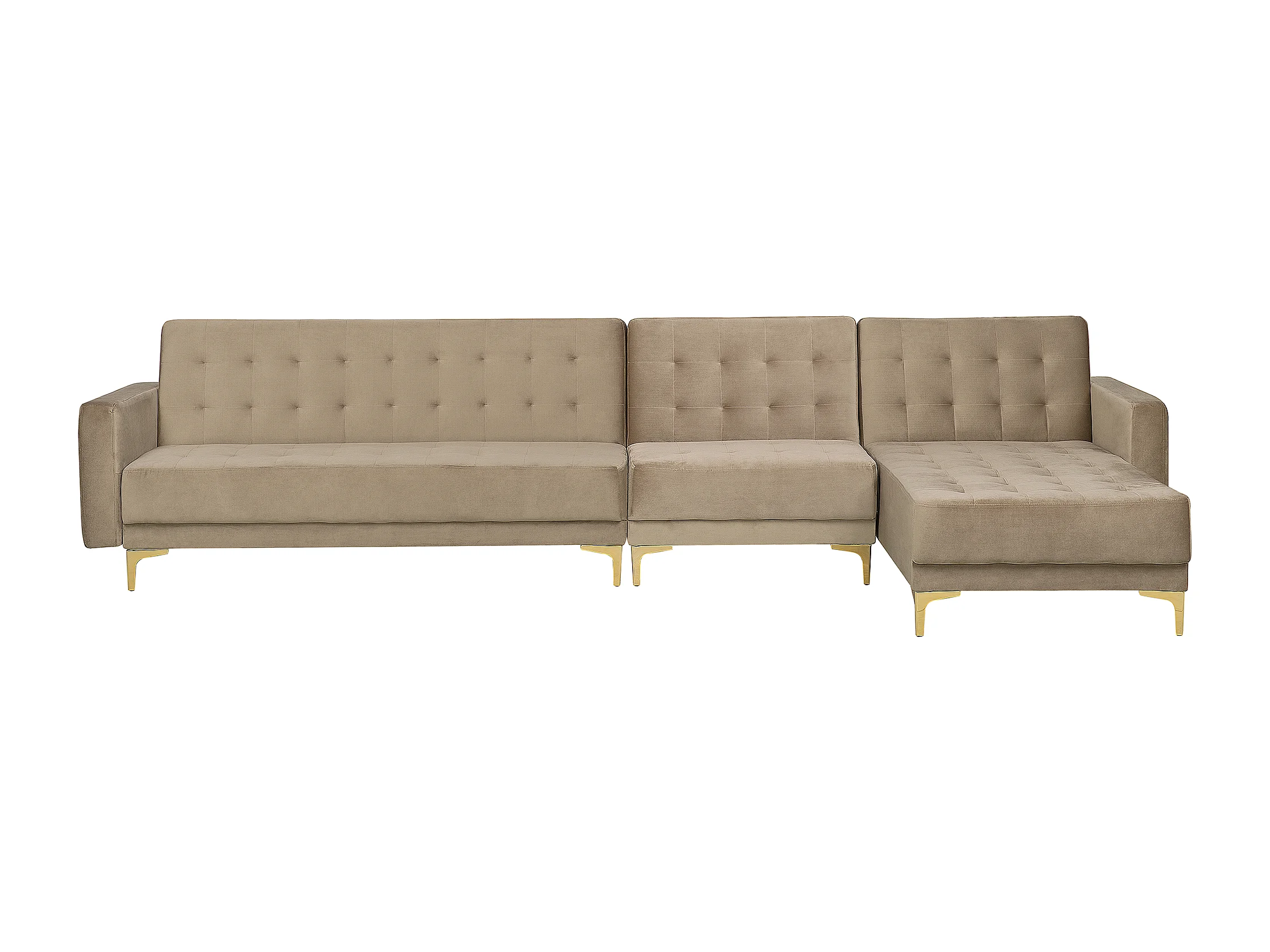 Modul Eckschlafsofa ABERDEEN Samtstoff Sandbeige 5-Sitzer linksseitig