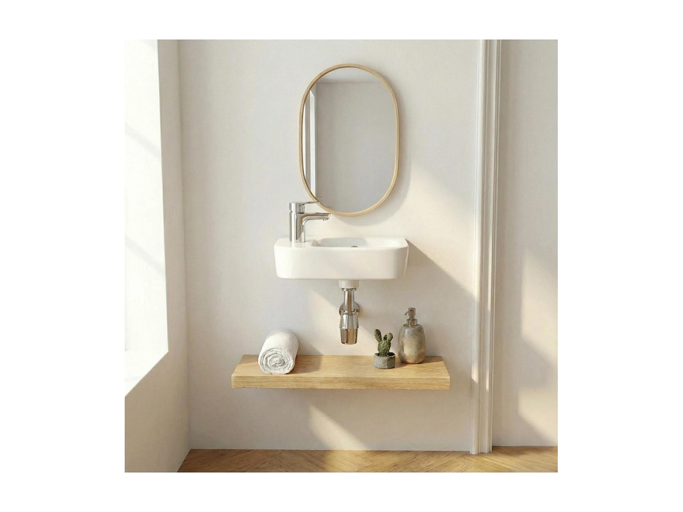MOKI 43x26,5cm weißes Keramik-Aufsatz- oder Wandwaschbecken