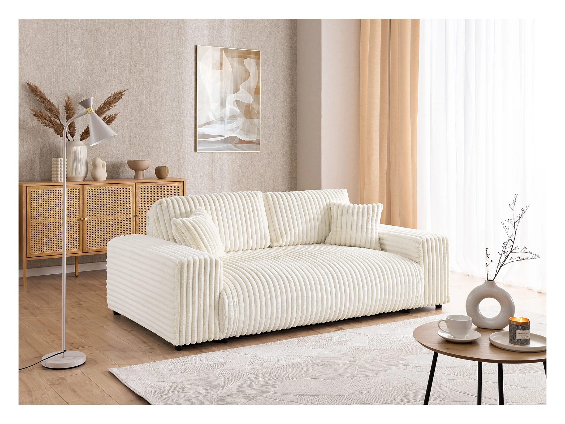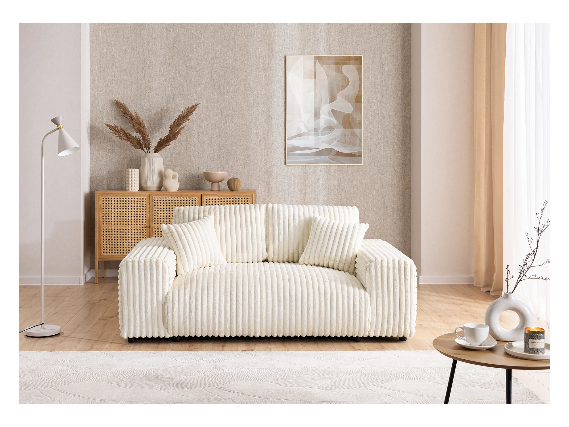Mollis - Polstergarnitur 3+2+1 aus Hellbeige Plüschcord mit schöner Sitzkomfort