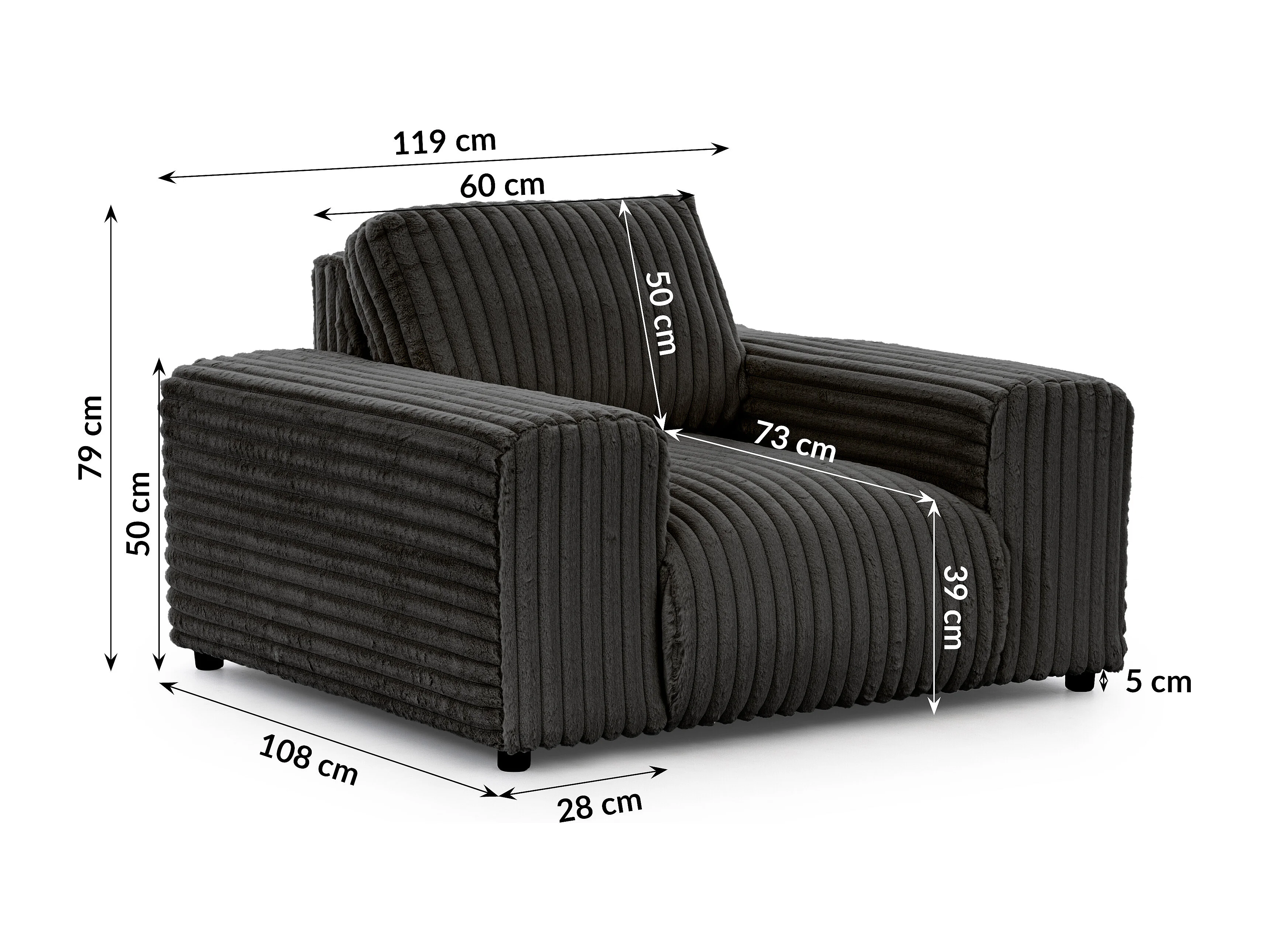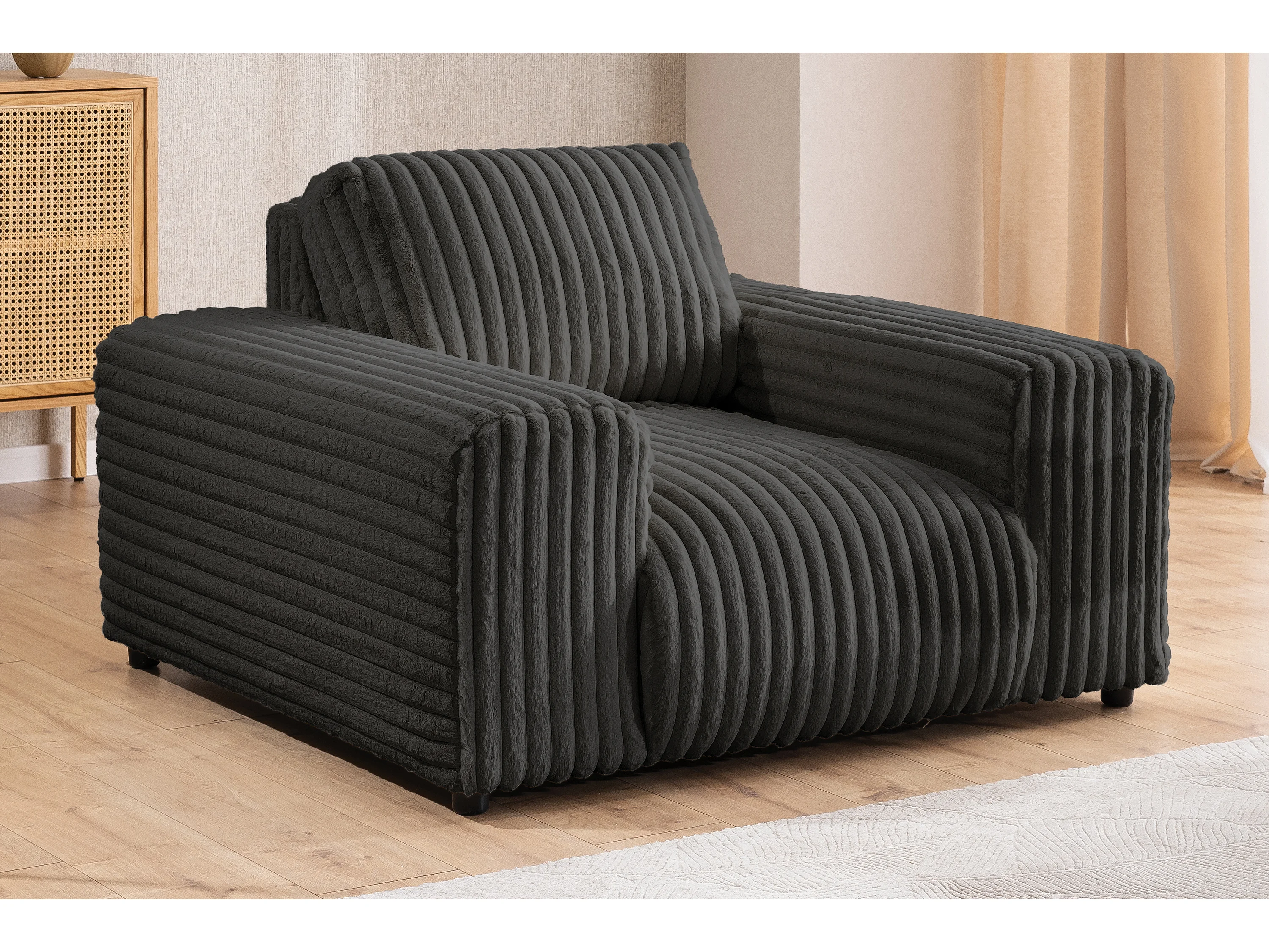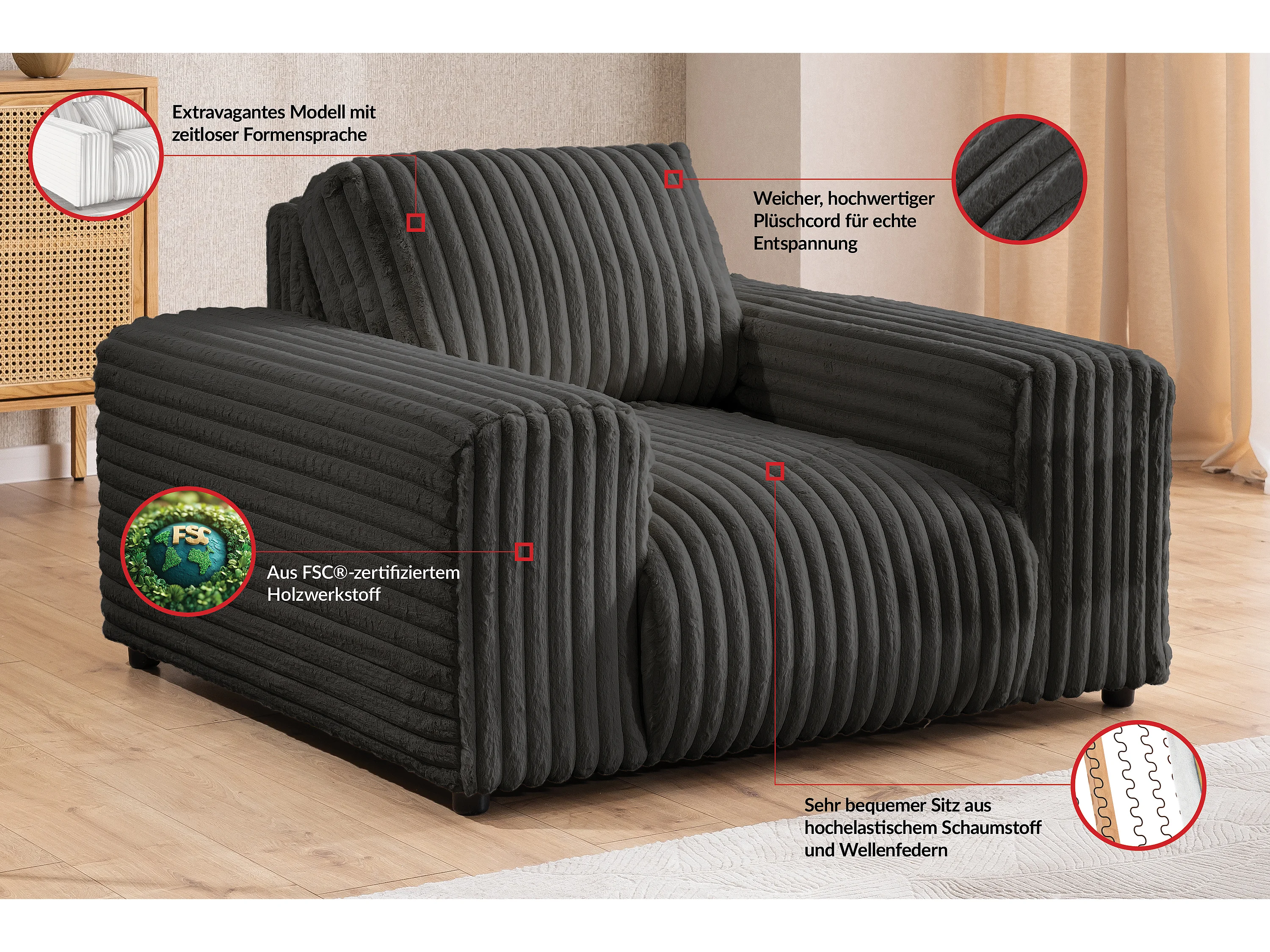 Mollis - Sessel aus Dunkelgrau Plüschcord mit schöner Sitzkomfort