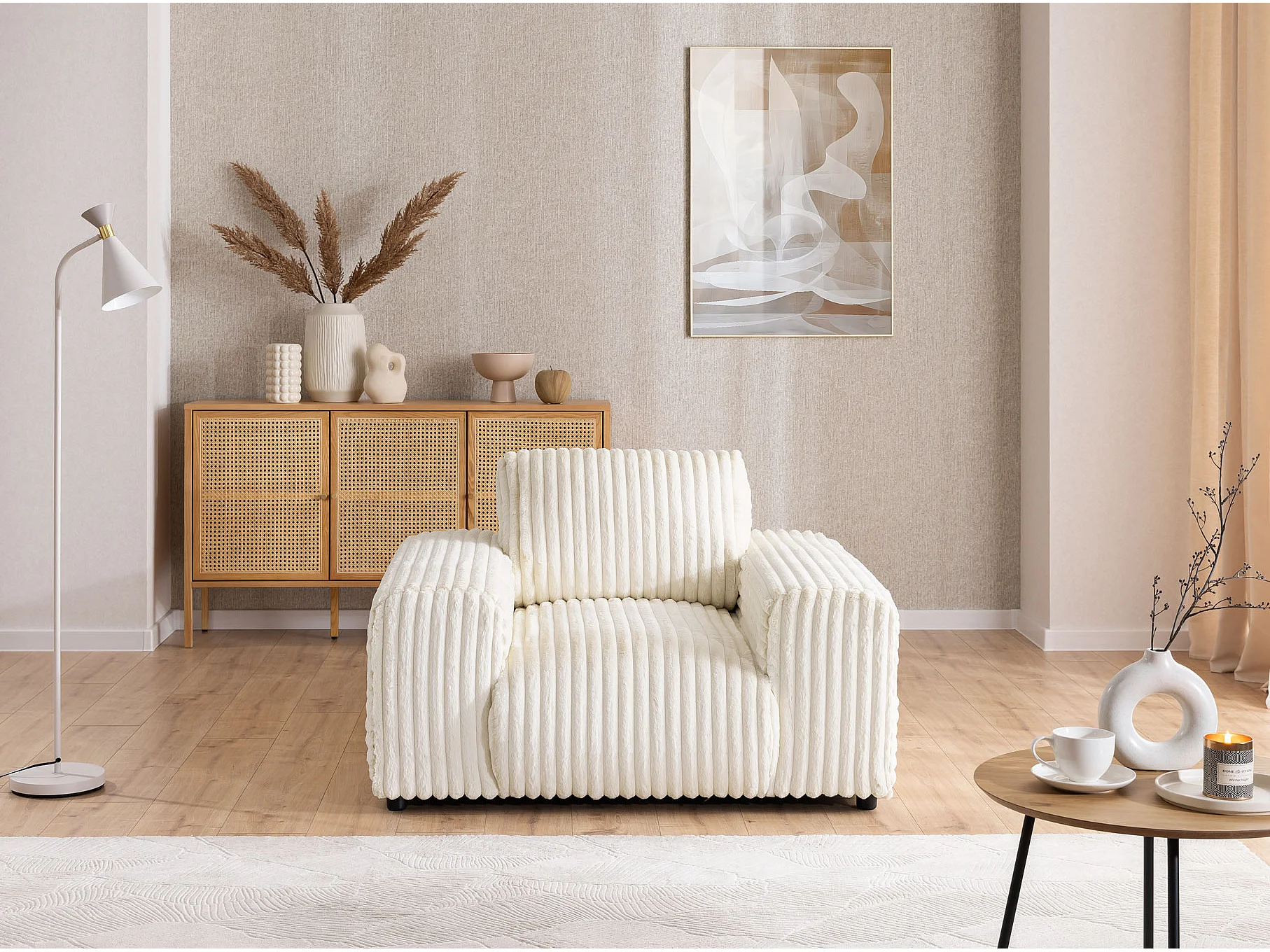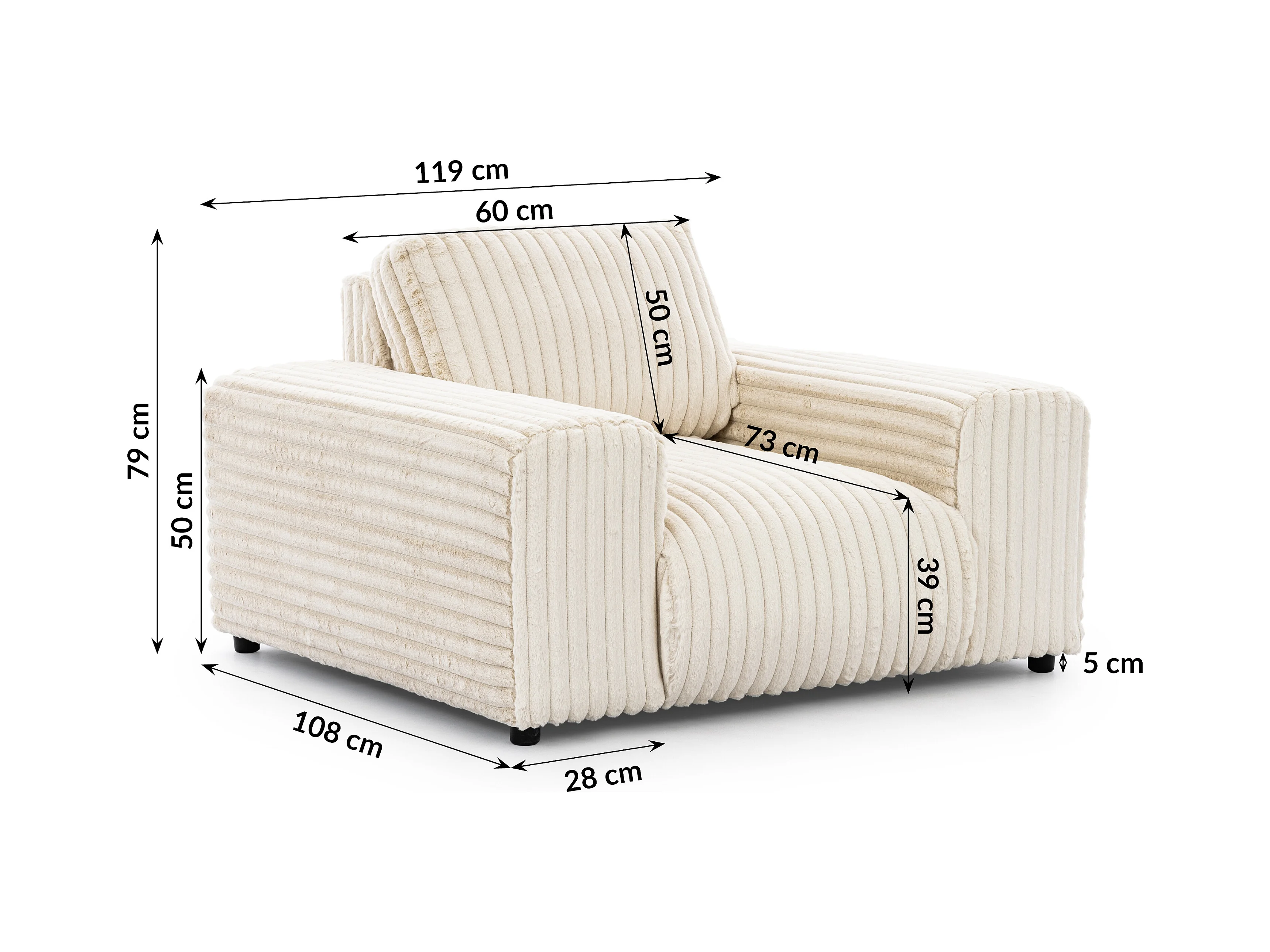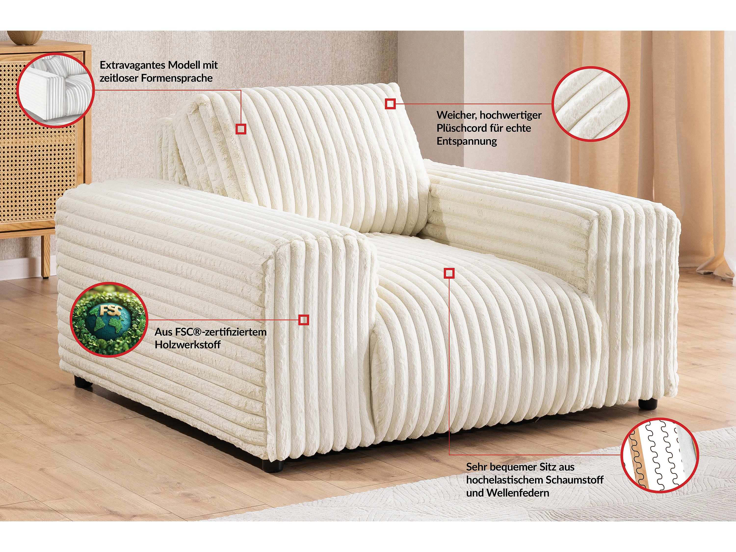 Mollis - Sessel aus Hellbeige Plüschcord mit schöner Sitzkomfort
