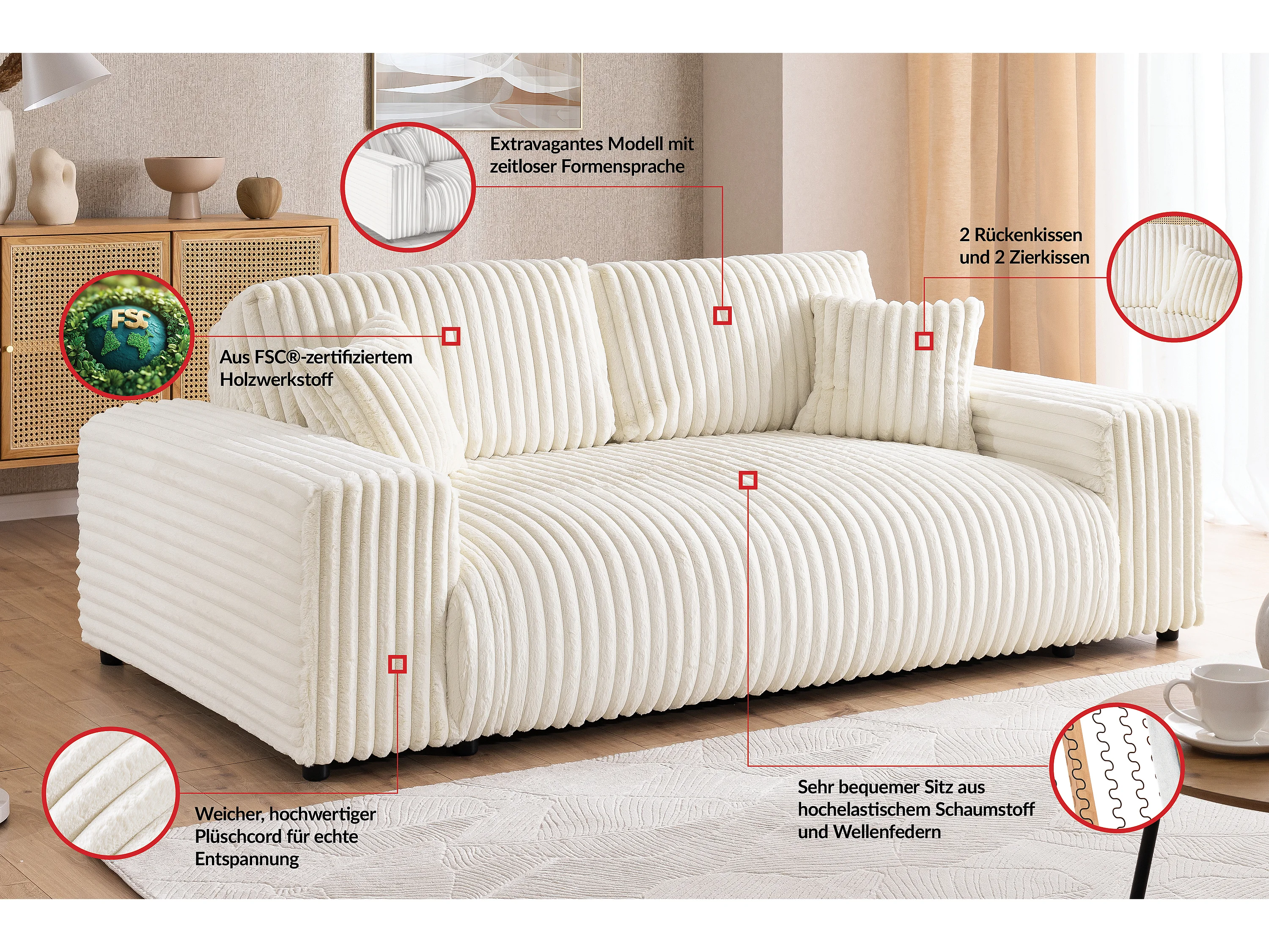 Mollis - Sofa 2 Sitzer aus Plüschcord mit schöner Sitzkomfort