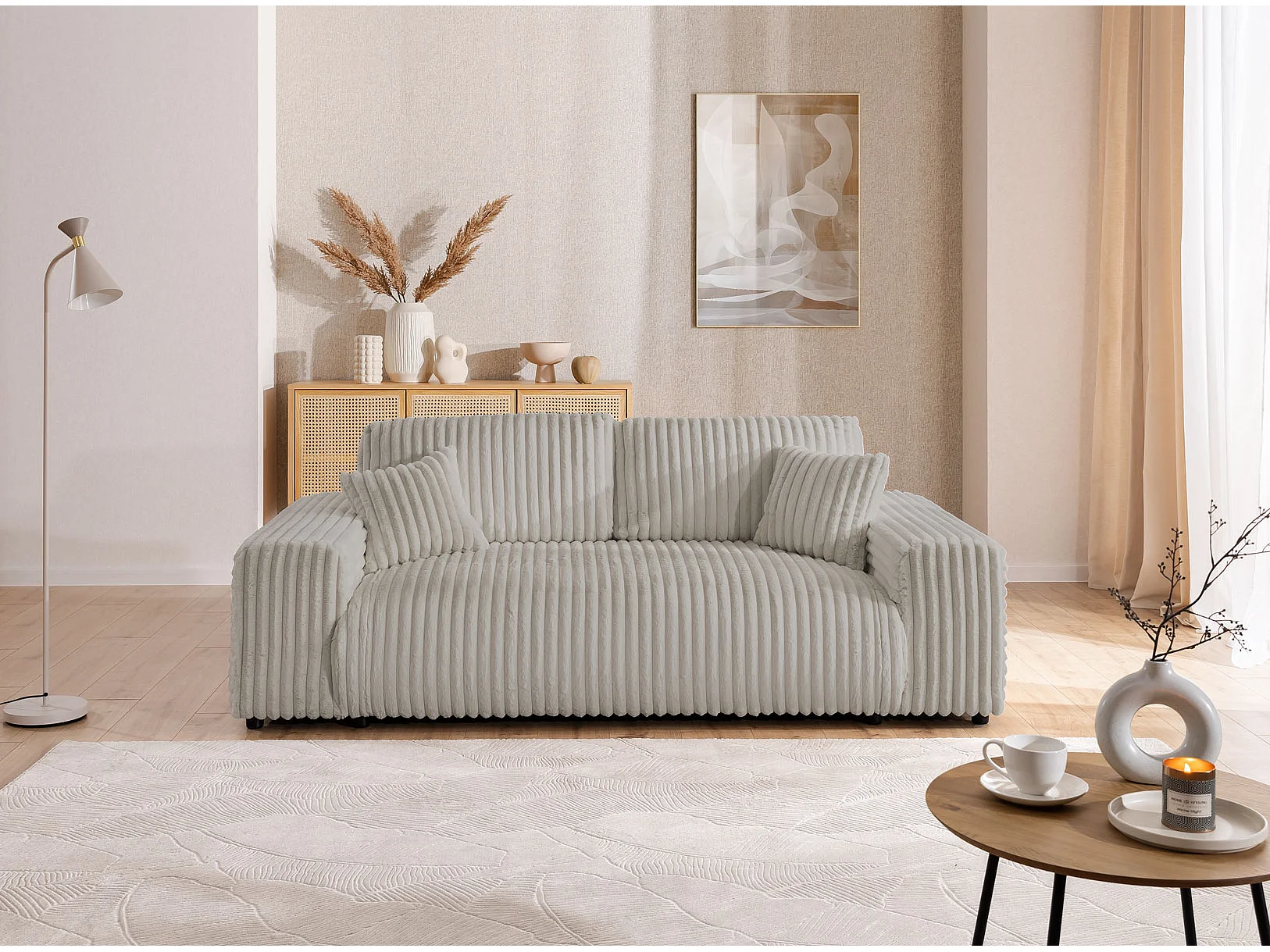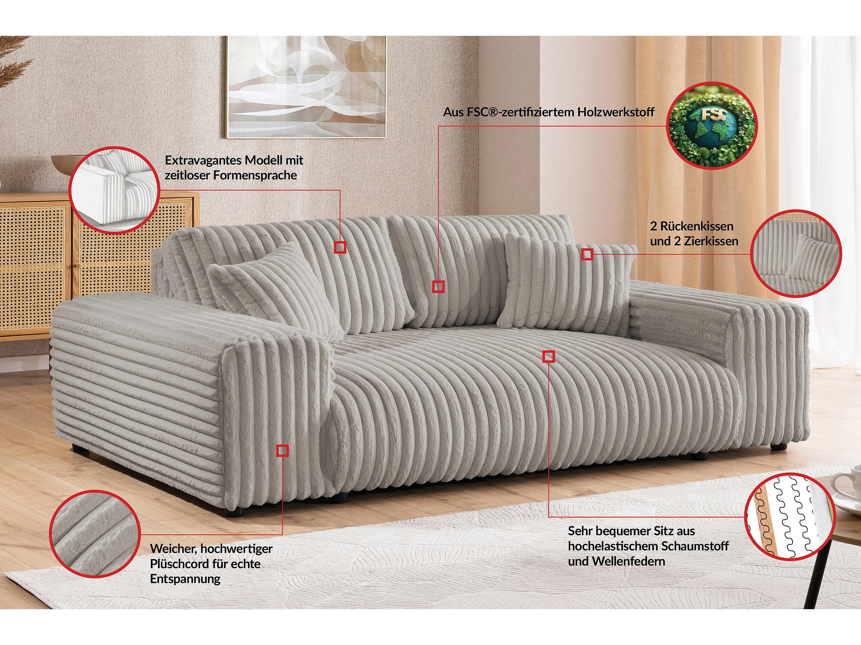 Mollis - Sofa 3 Sitzer aus Hellgrau Plüschcord