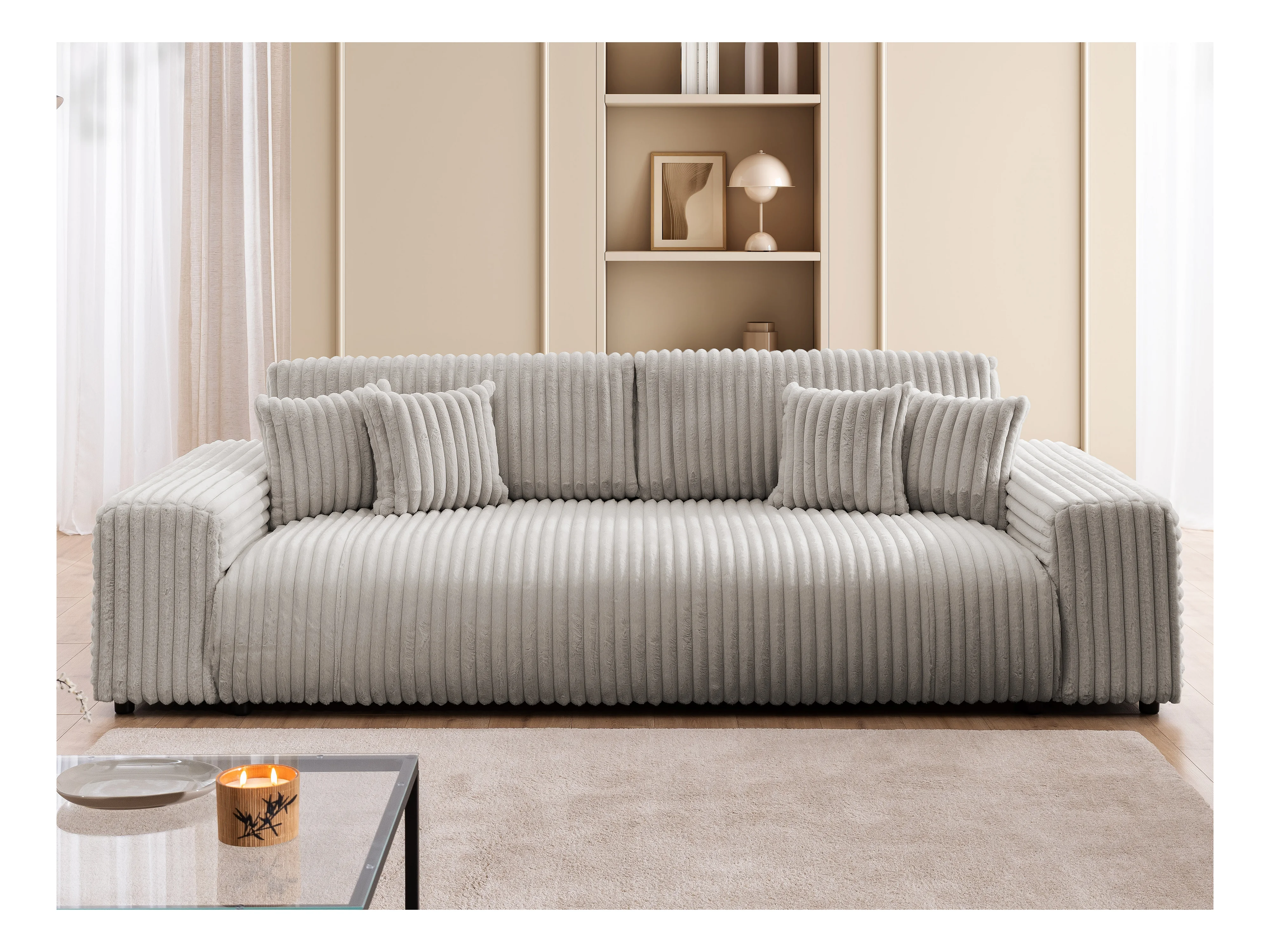 Mollis - Sofa mit Schlaffunktion und Bettkasten aus Hellgrau Plüschcord mit schöner Sitzkomfort