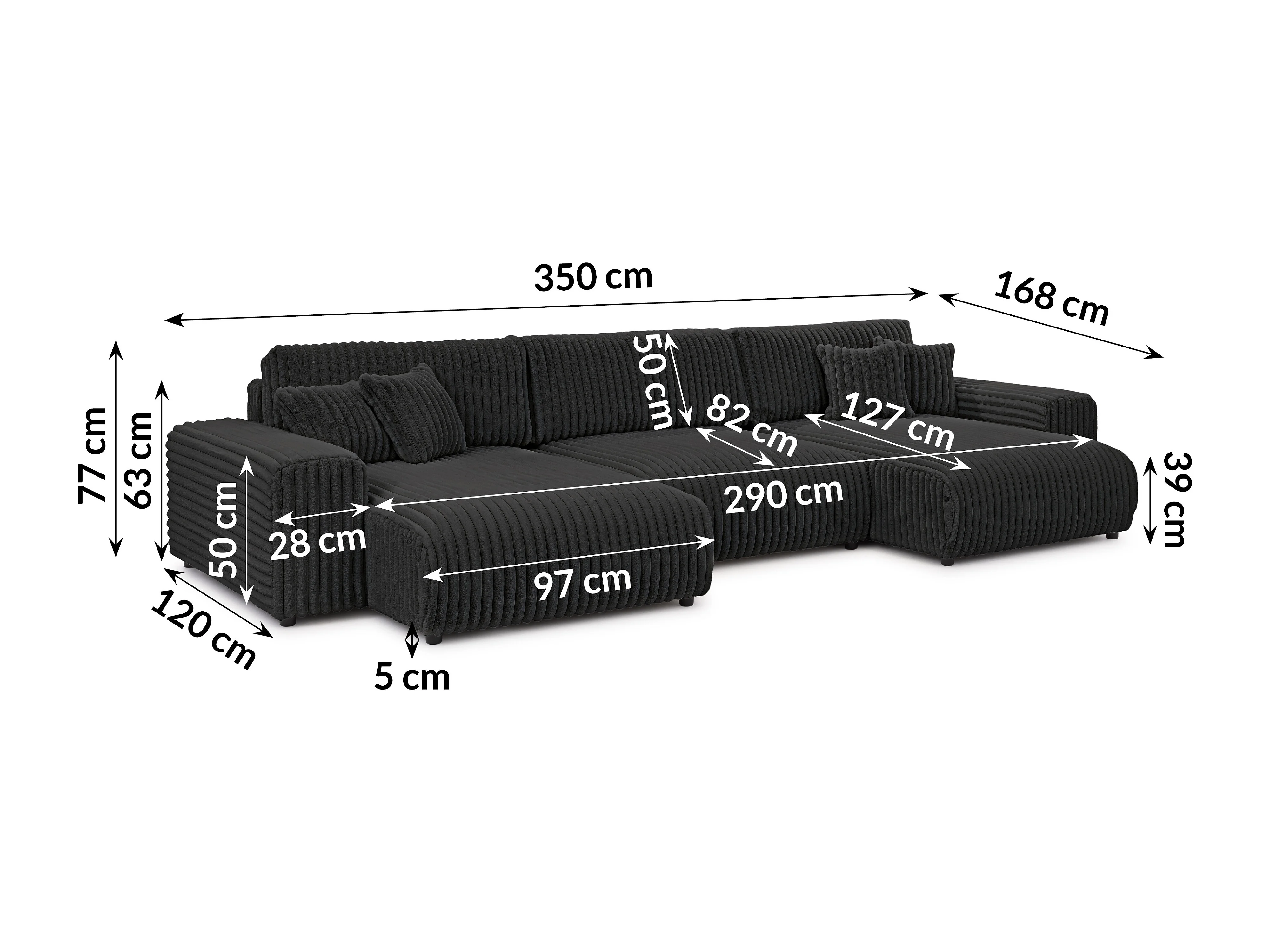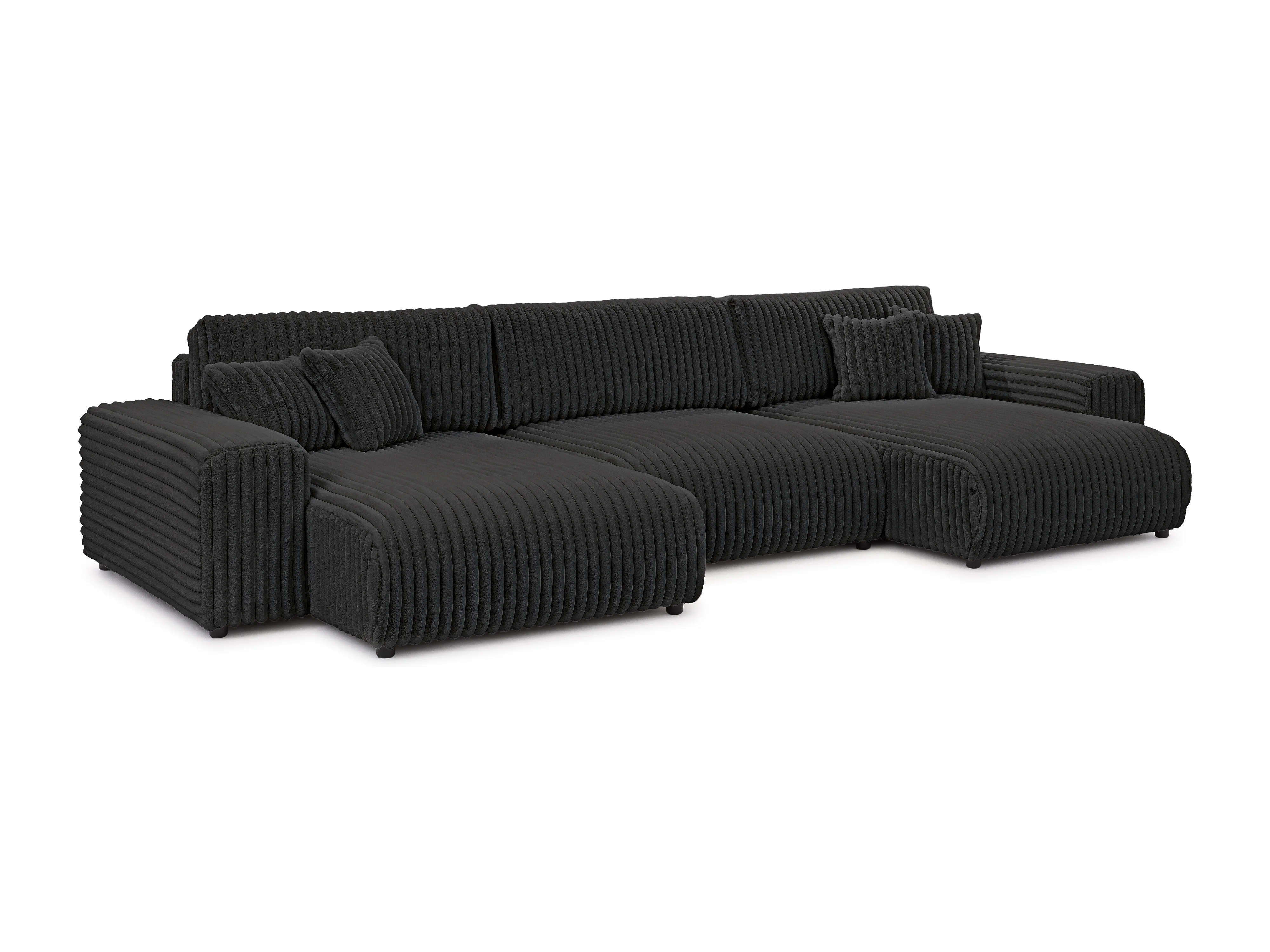 Mollis - Wohnlandschaft mit Schlaffunktion und Bettkasten aus Dunkelgrau Plüschcord mit schöner Sitzkomfort