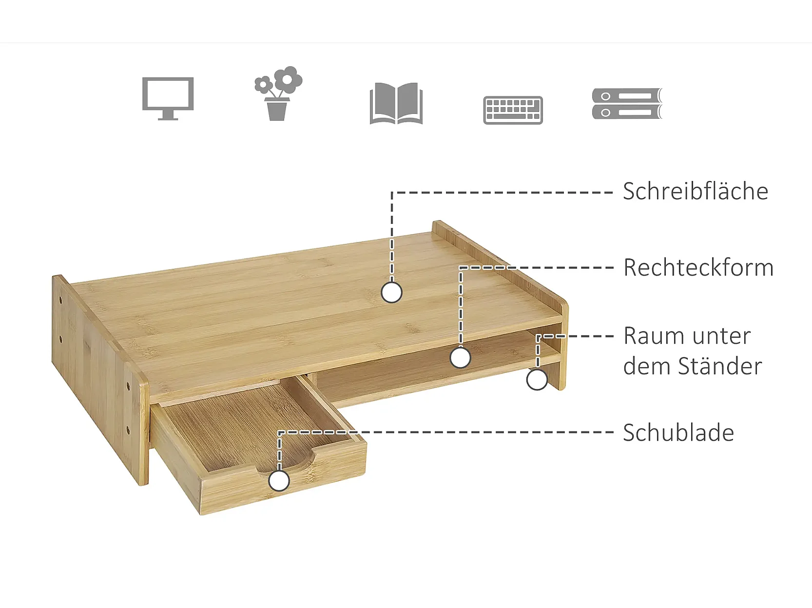 Monitorständer mit Schublade, Bildschirmerhöhung Monitor Ständer Bildschirmständer für PC 49 x 25,5 x 11,5cm