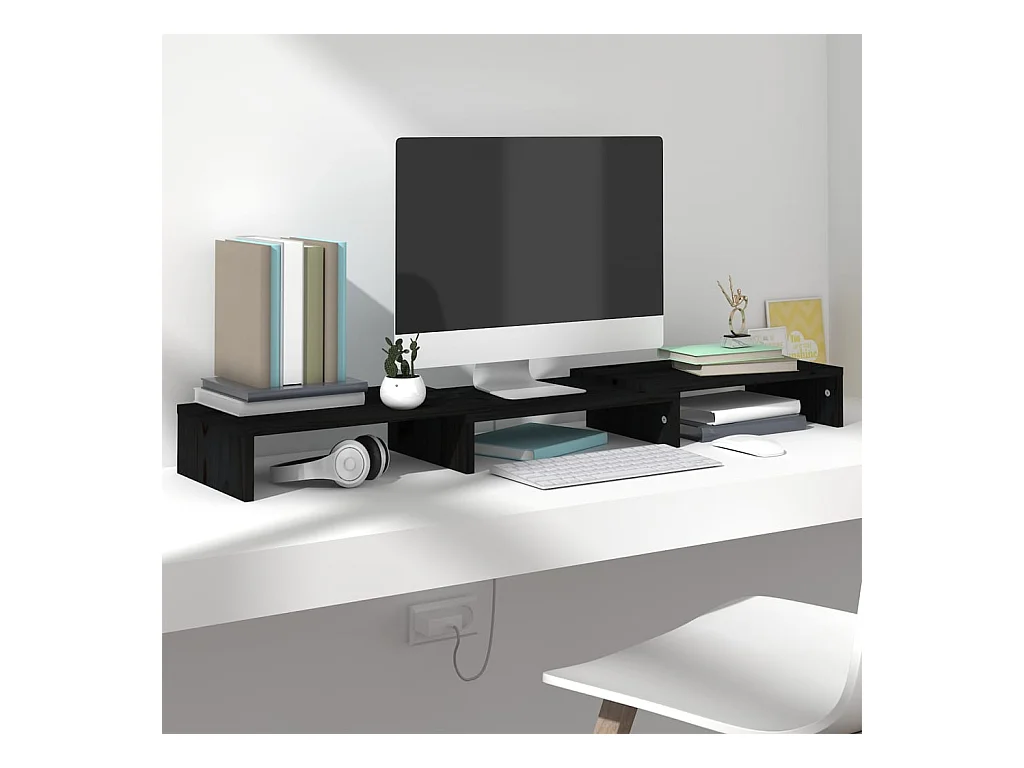 Monitorständer Schwarz 80x24x10,5 cm Massives Kiefernholz
