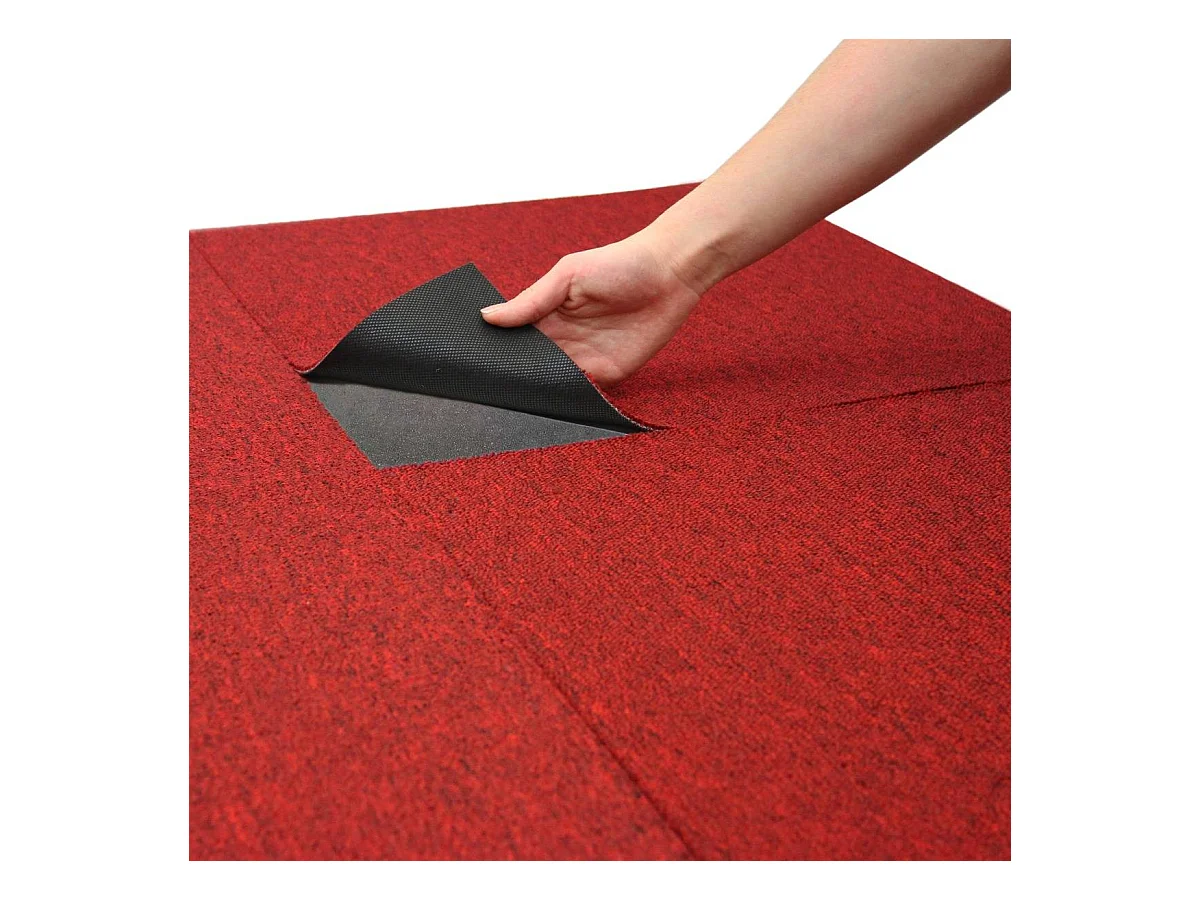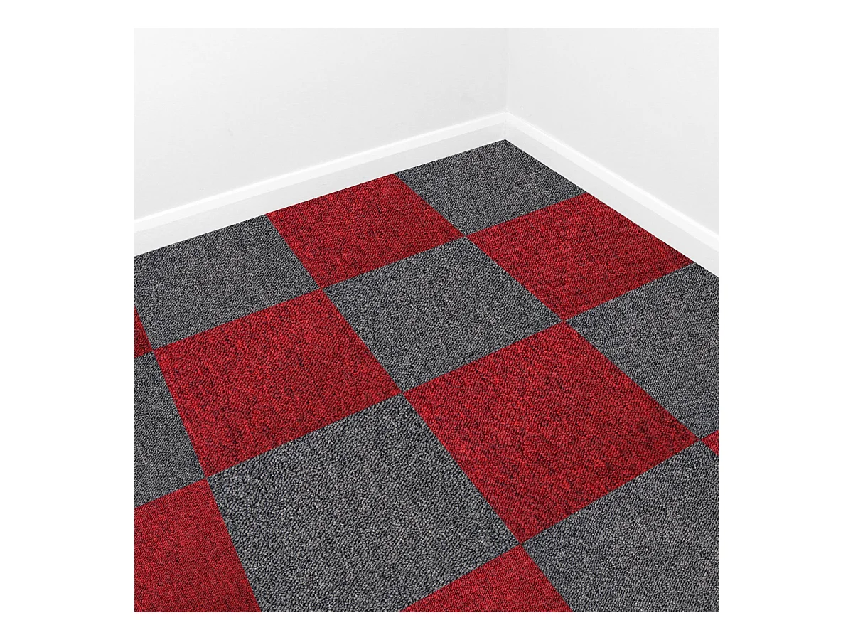 MonsterShop 40 Stück Teppichfliesen Bodenfliesen Teppich 50 x 50 cm für 10 m² in Fieberrot & Kohle-Schwarz