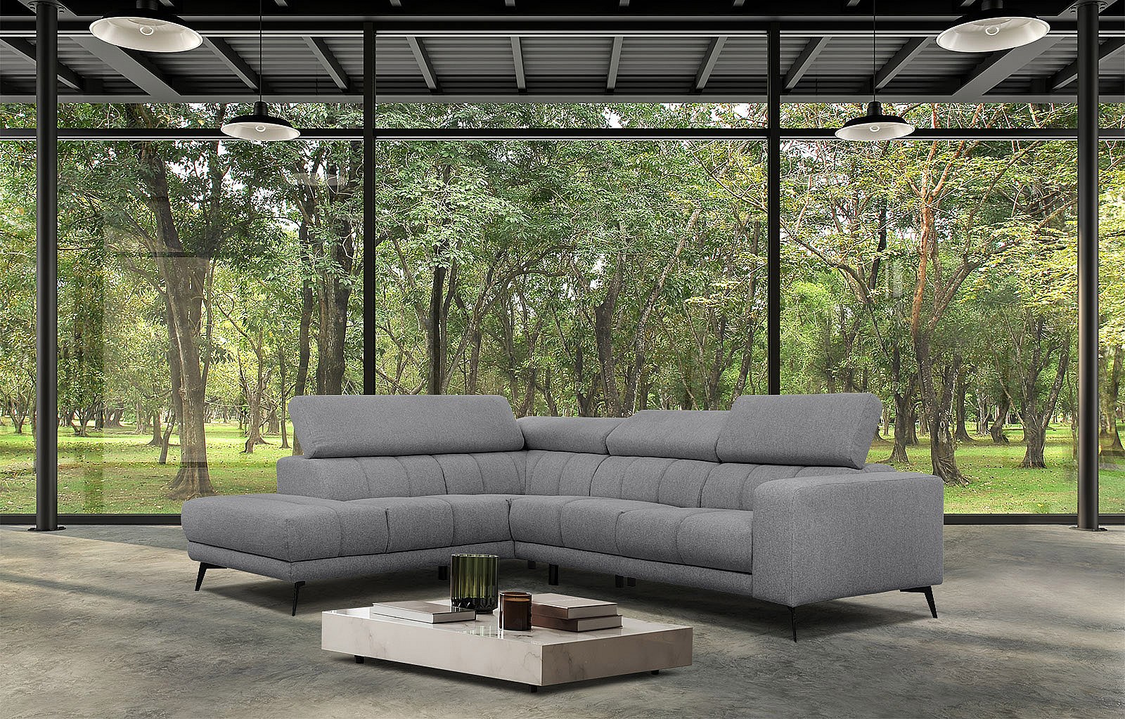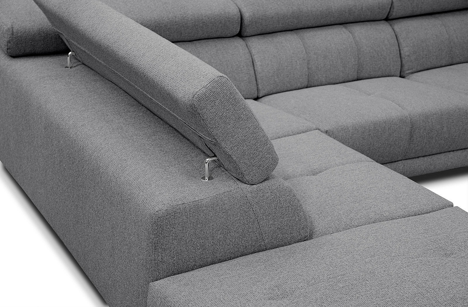 MORELLO Ecksofa 5-Sitzer links mit verstellbare Kopfstützen, grau