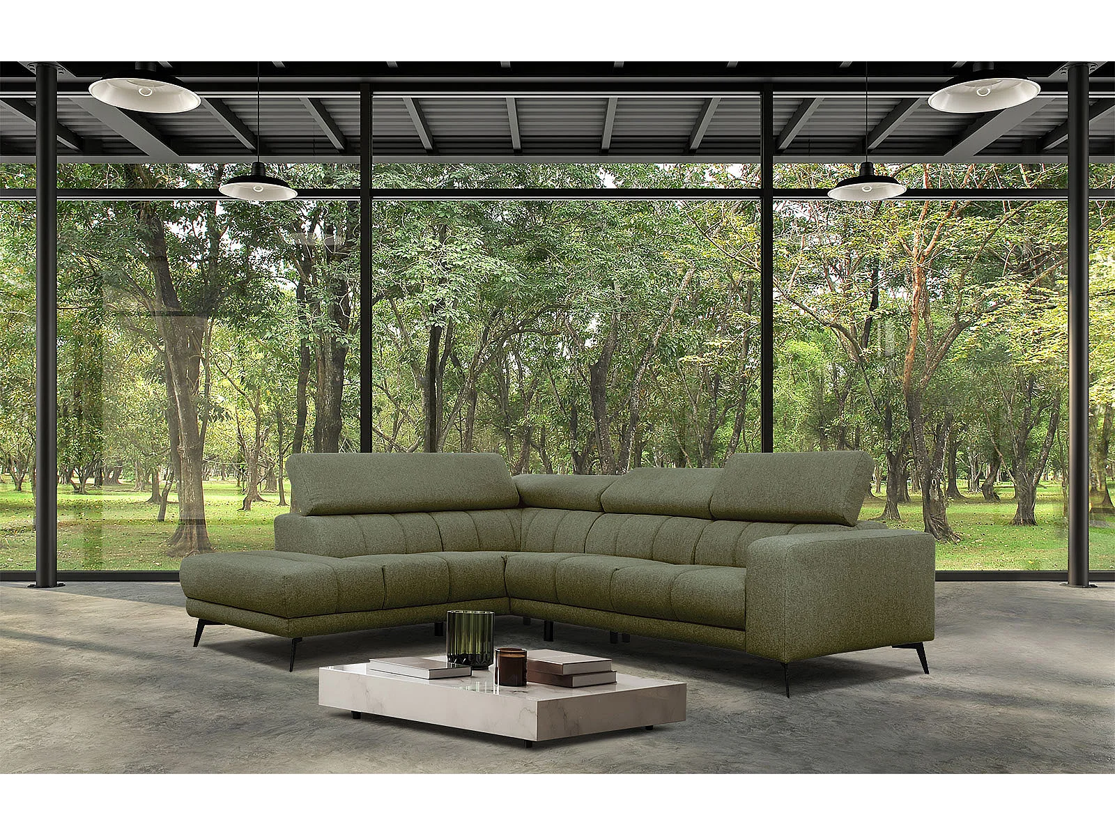 MORELLO Ecksofa 5-Sitzer links mit verstellbare Kopfstützen, olive