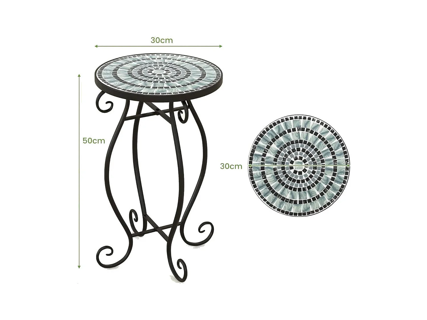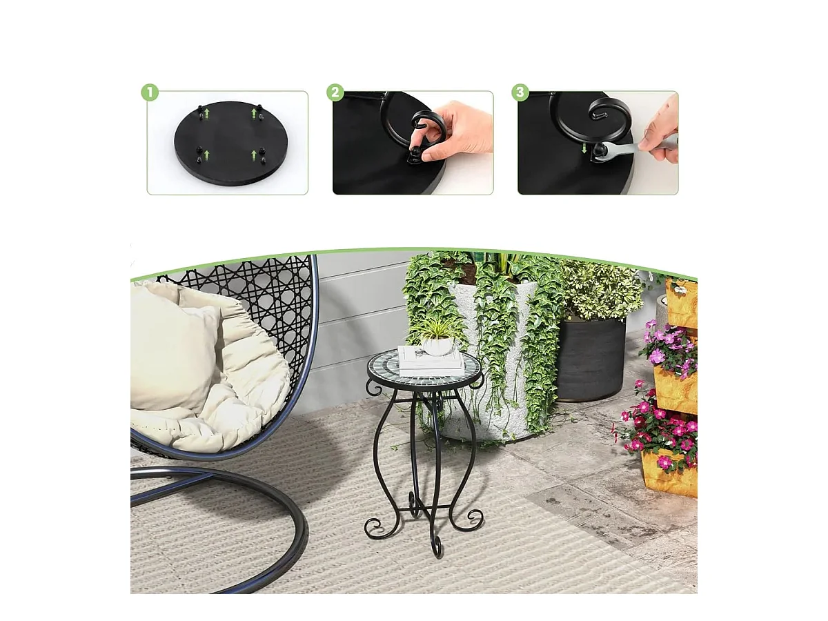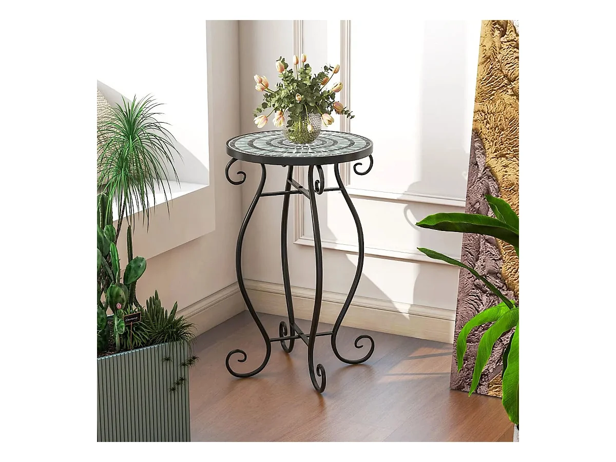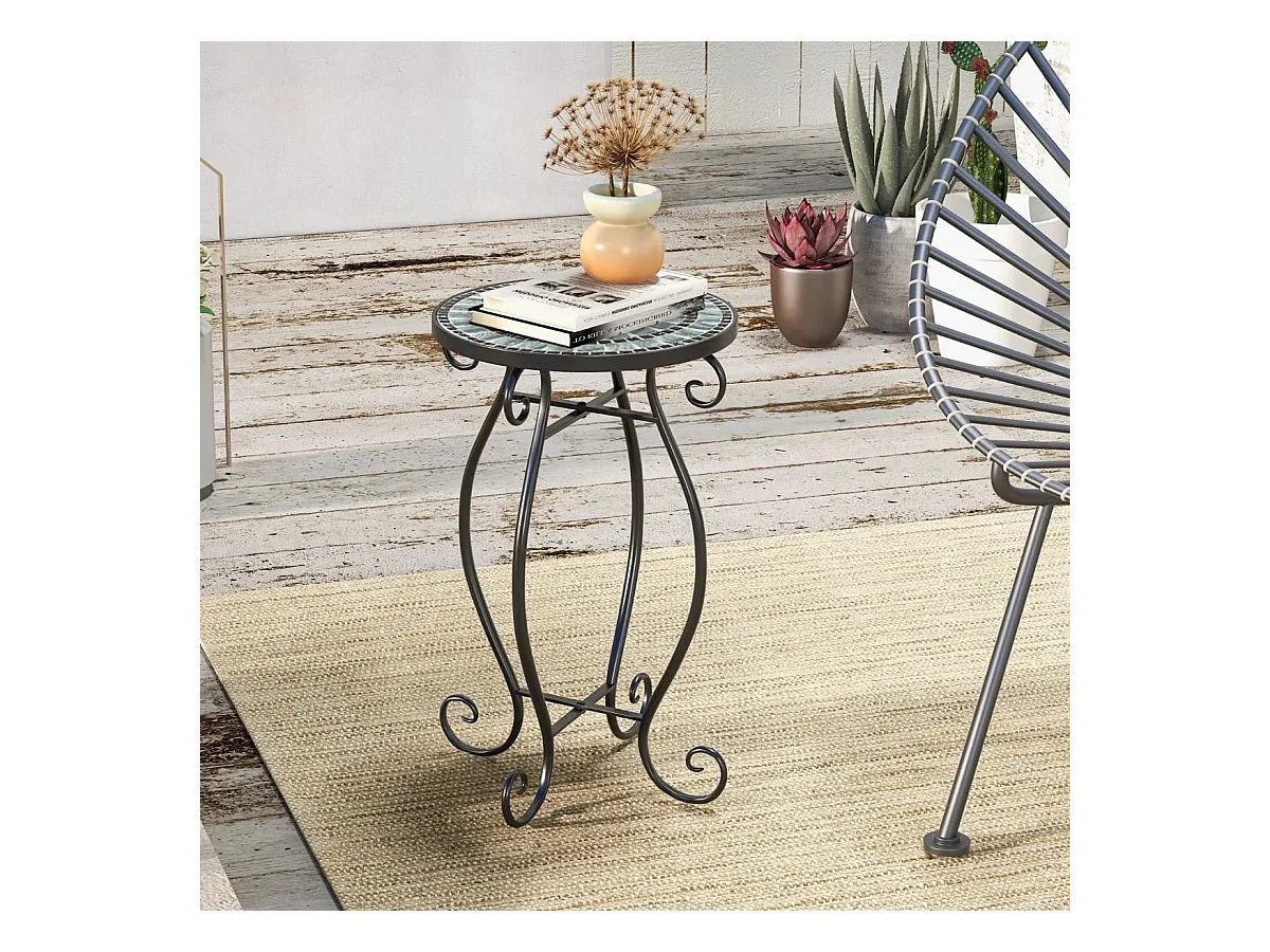 Runder Beistelltisch Mosaiktisch aus Metall & Keramik ?30 x 50 cm für Balkon Terrasse Garten