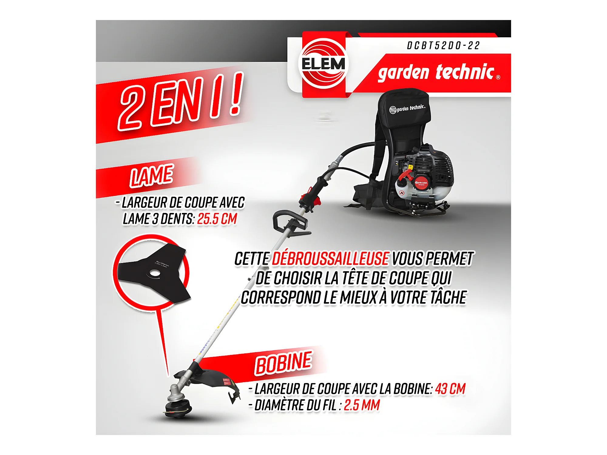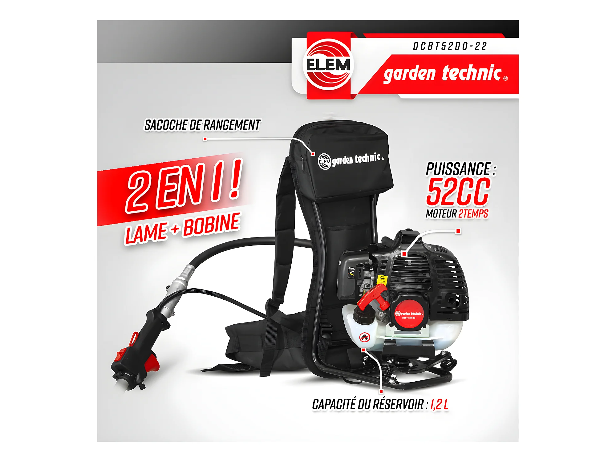 Motorsense Rückentragbar 52CC - Klinge + Fäden - Elem Garden