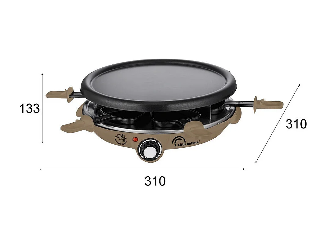 Multifunktionale Raclette Little Balance Meuuuh für 6 Personen 1200W Taupe mit Crêpepfanne und 6 Pfännchen