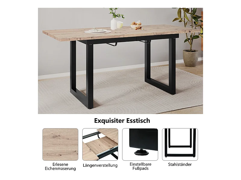 Multifunktionaler ausziehbarer Esstisch aus Stahl – Industriestil – Natur