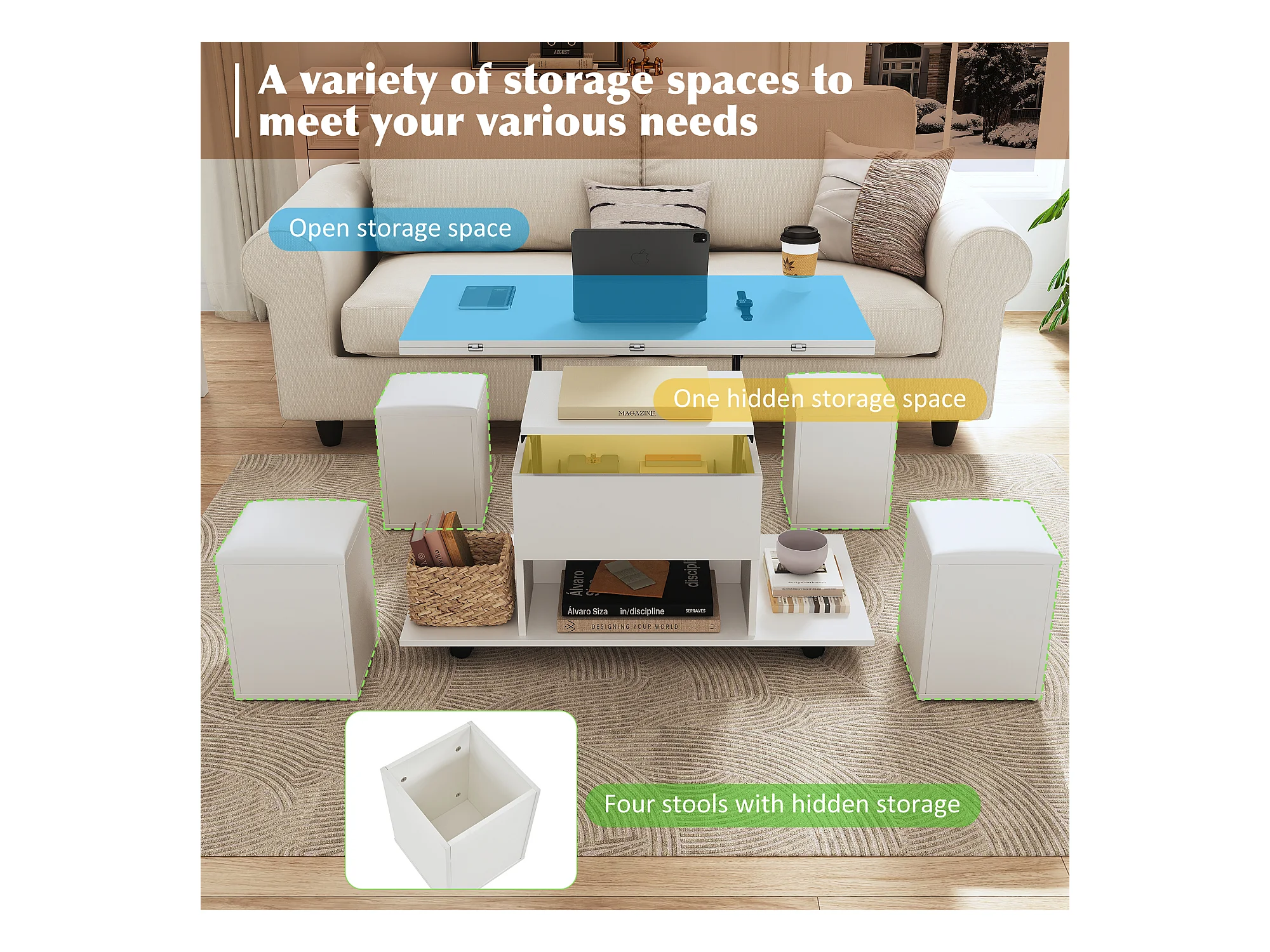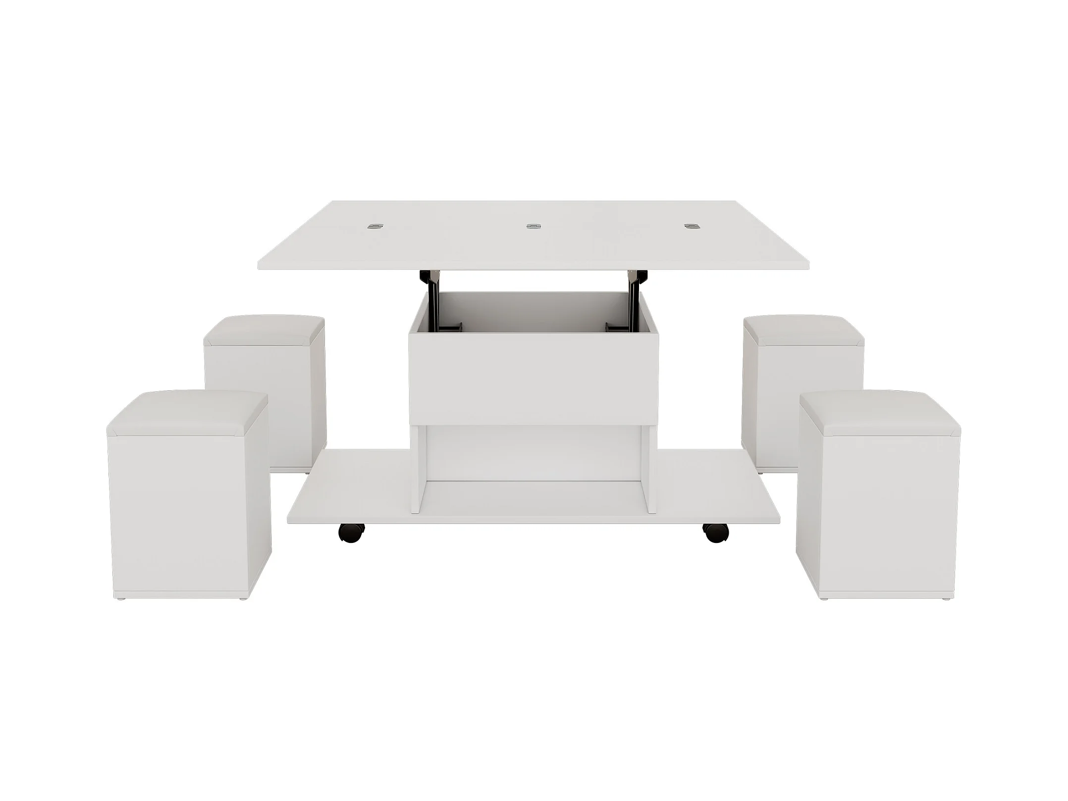 Multifunktionaler Couchtisch – verwandelt in einen Tisch und 4 Hocker – Weiß