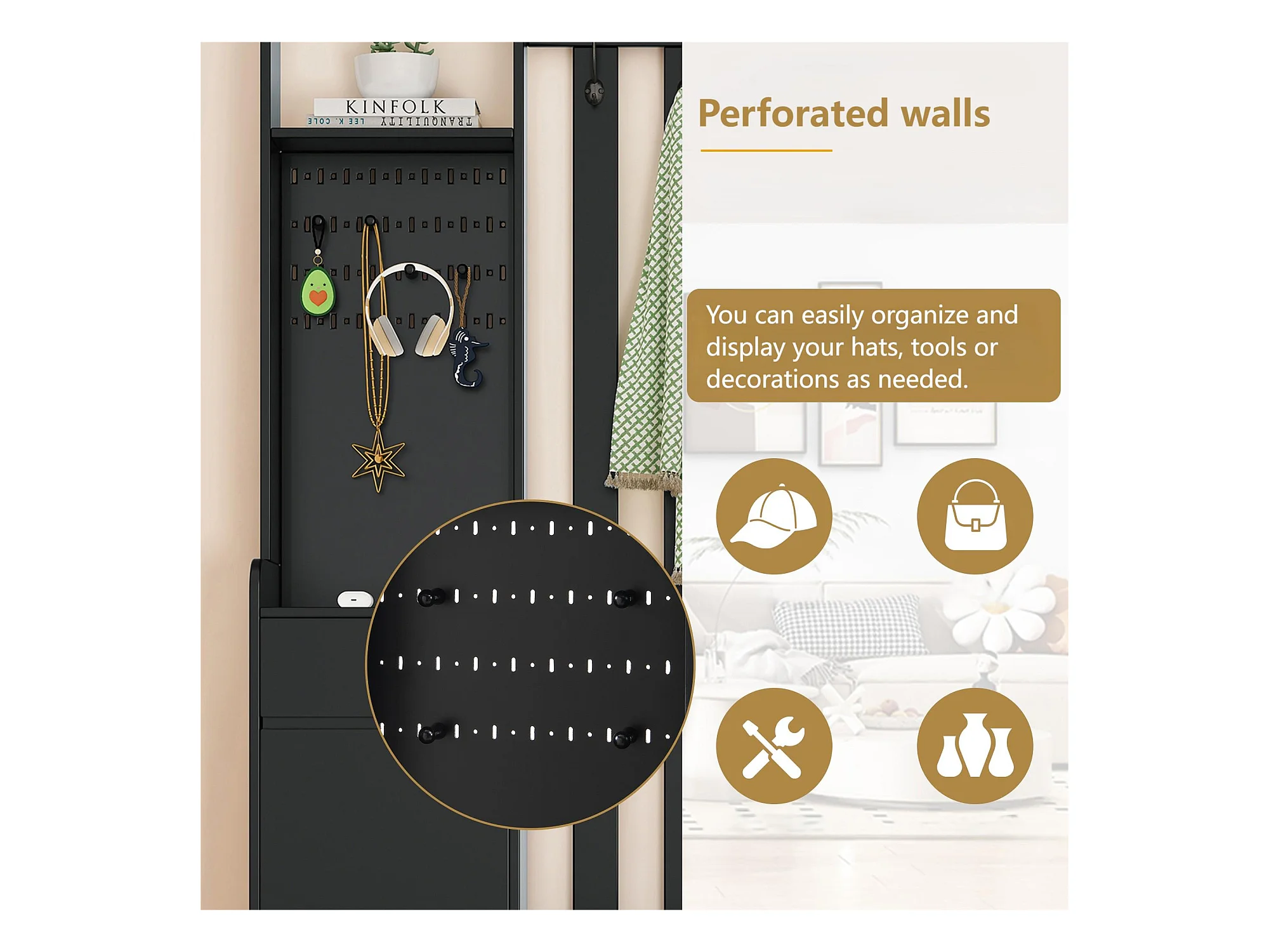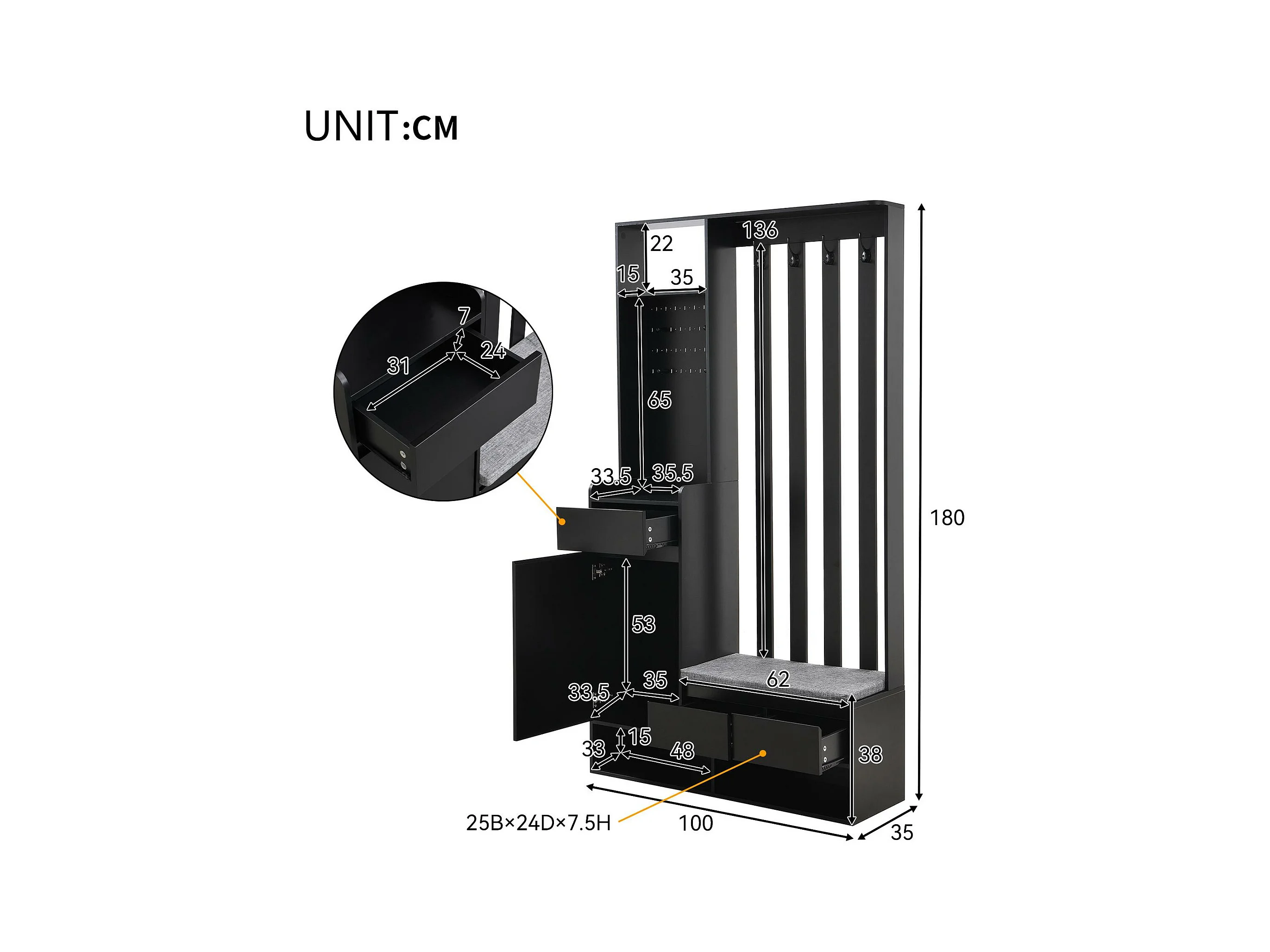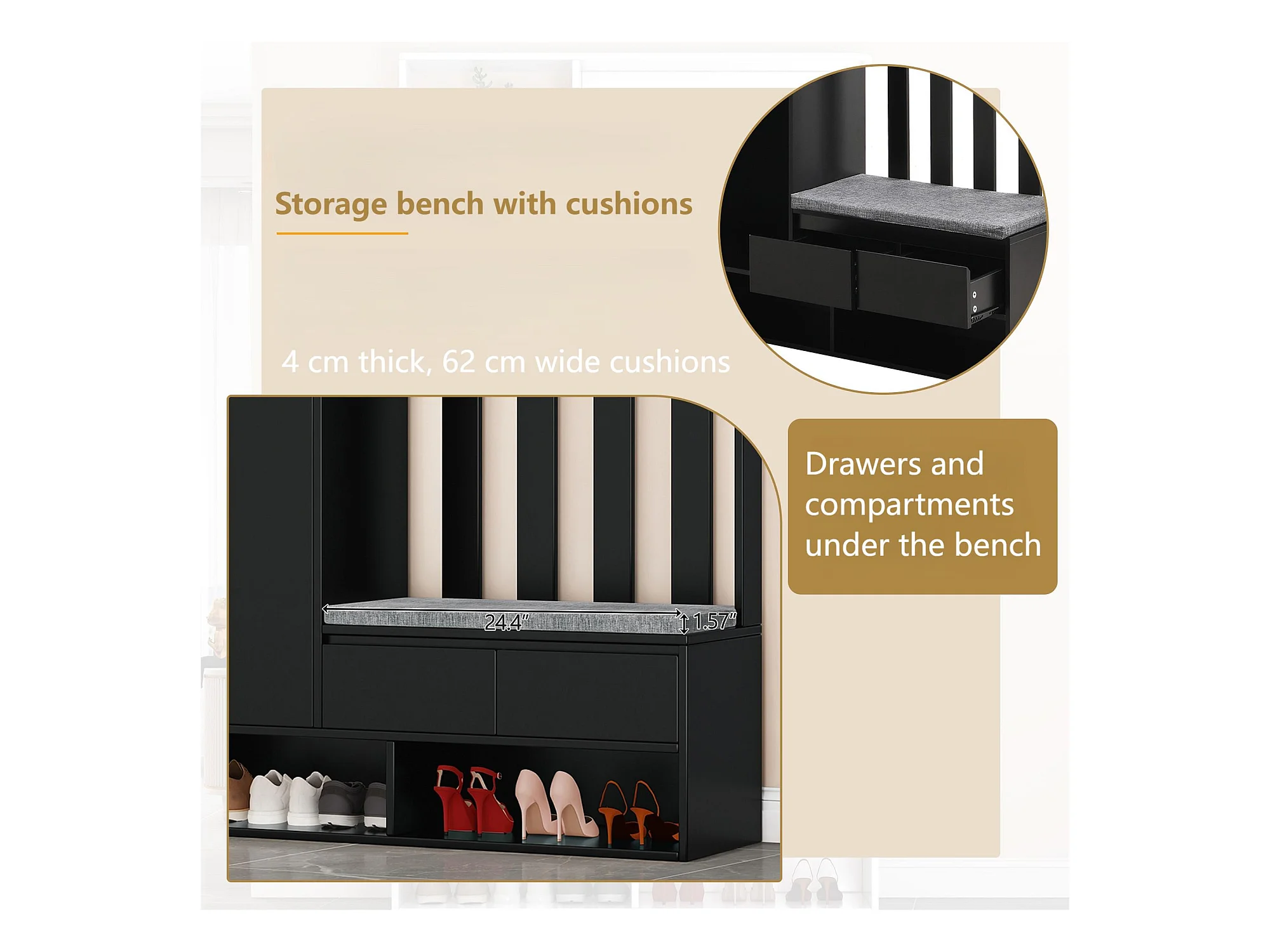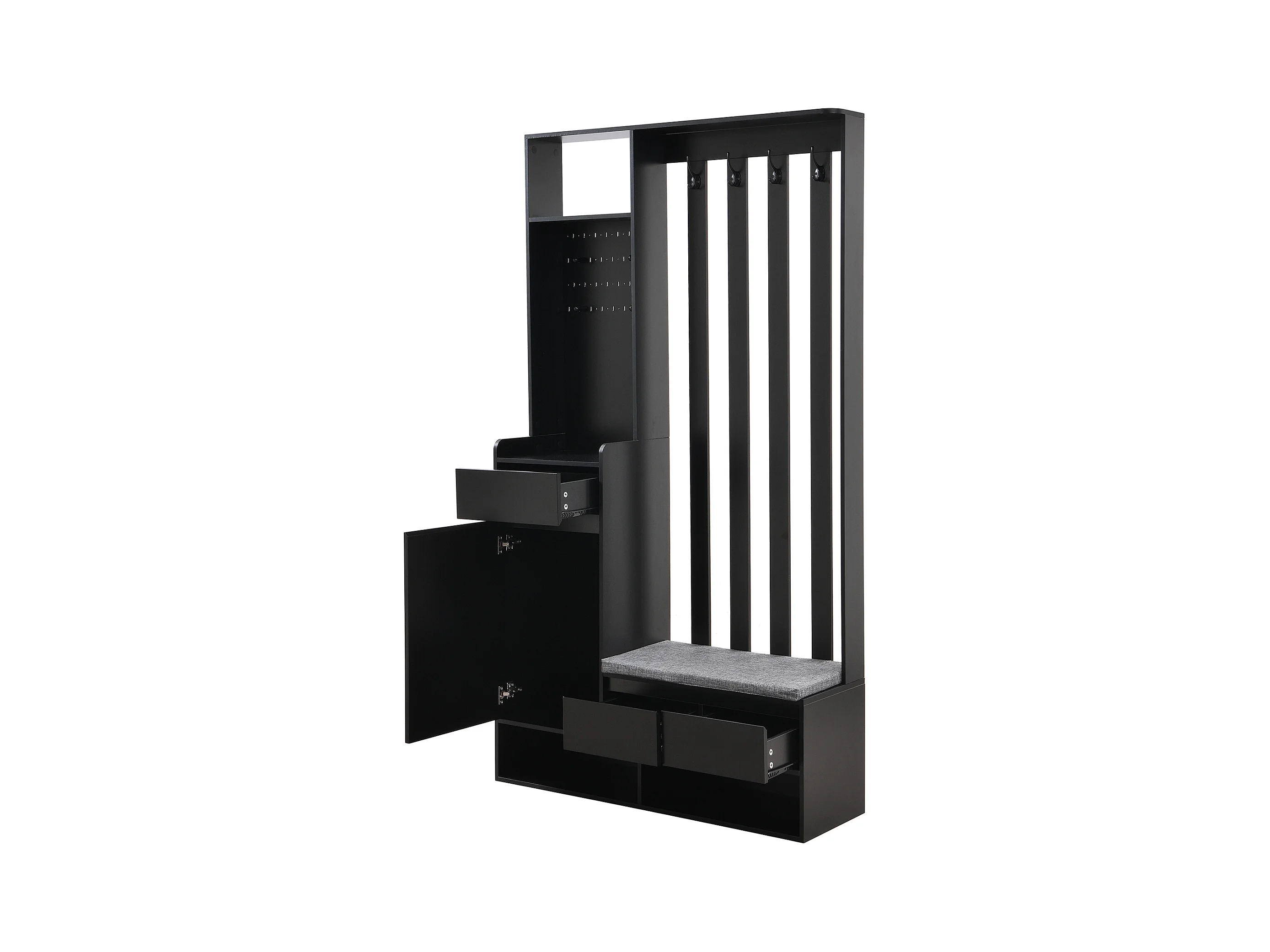 Multifunktionaler Eingangsschrank – mit Garderobe und Schuhbank – MDF – Schwarz