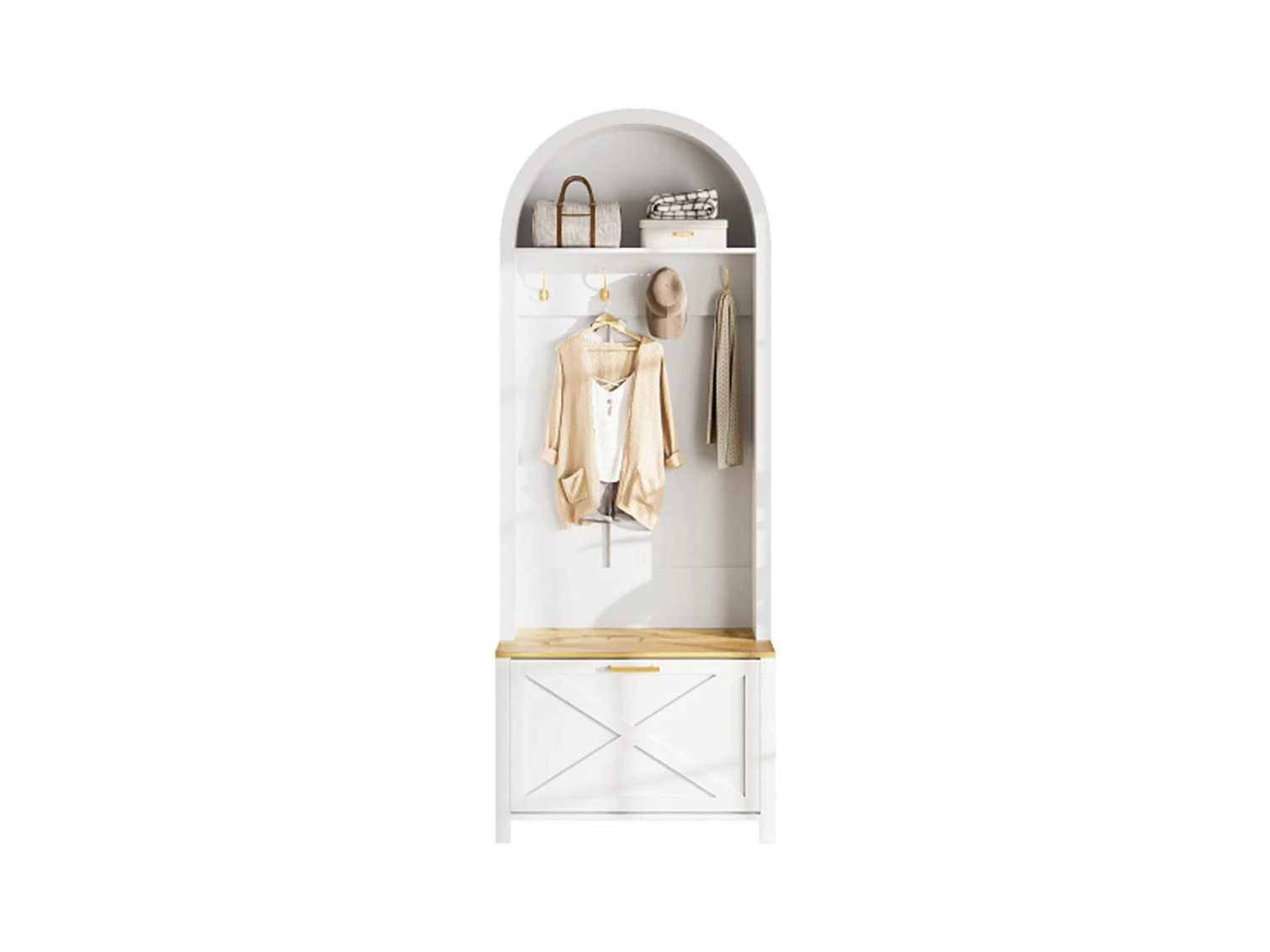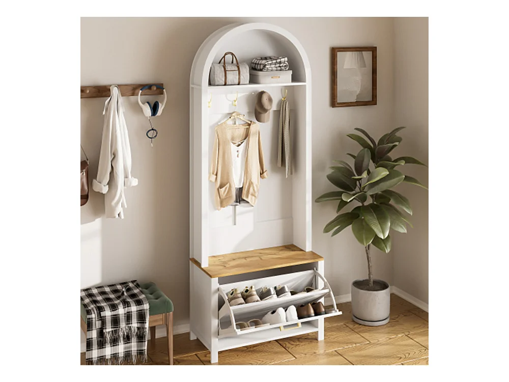 Multifunktionaler Garderobenschrank mit Schuhregal, Sitzbank Ablage & Haken, Hall Tree für Eingangsbereich