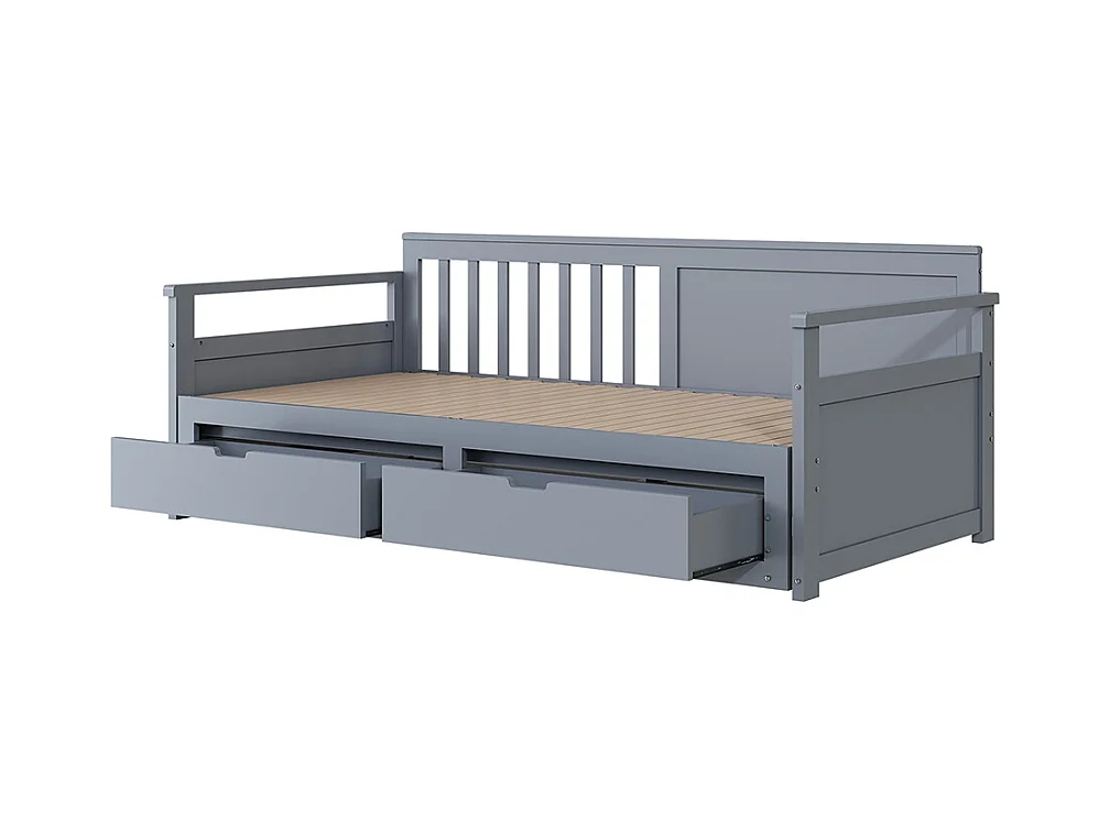 Multifunktionales Ausziehbett 2 in 1 90 (180) x 190, mit Kiefernholzbett, Schubladen , Grau