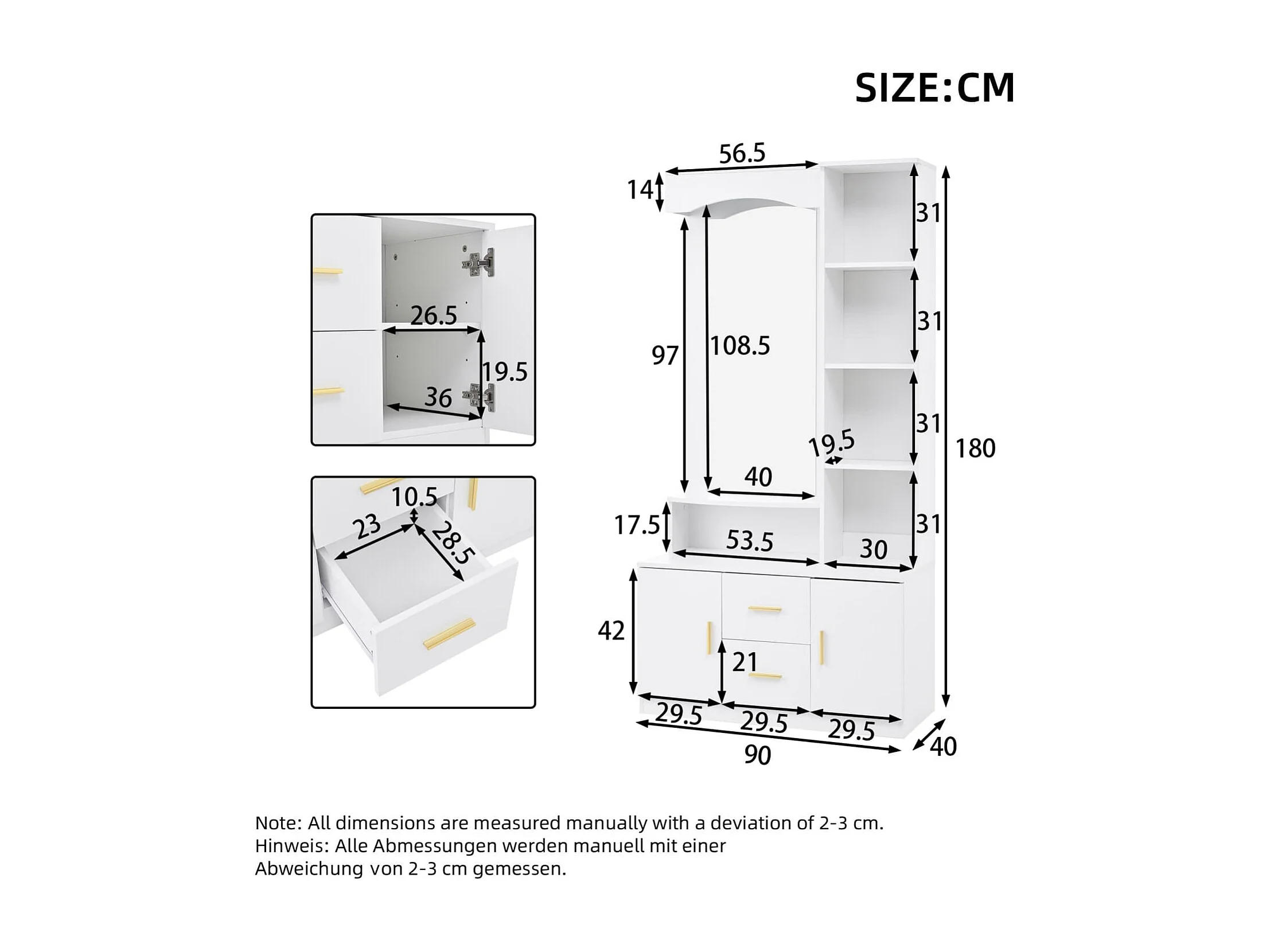 Multifunktionales Diele Flur mit Stauraum,Schränke mit Schuhschrank und Spiegel,Cabinet mit 2 Schublade und 2 Schränke, Kommoden mit Regal,Weiß