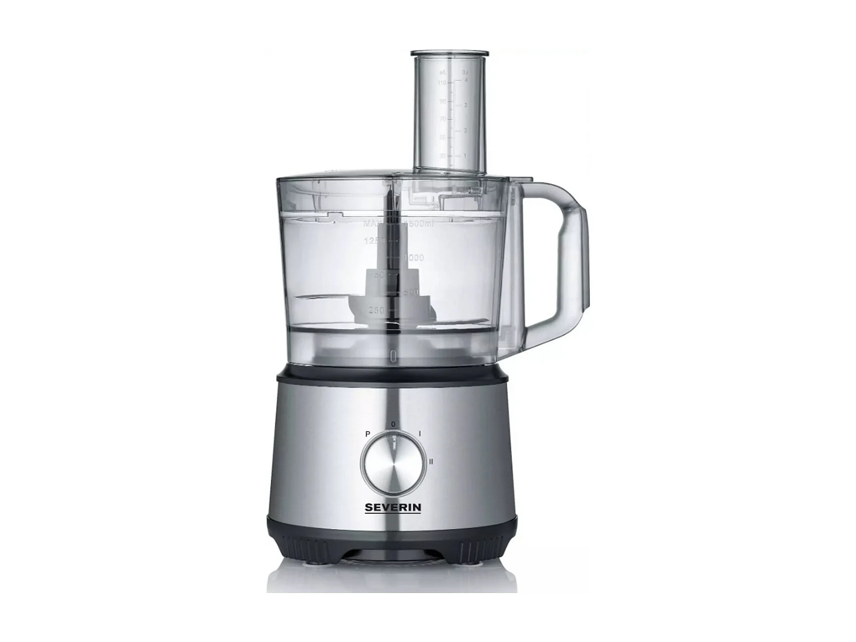 Multifunktions-Küchenmaschine SEVERIN KM3892 1200W Edelstahl/Schwarz mit 1,5L Mixer, 3 2-in-1 Scheiben, Gewürzmühle und Knethaken