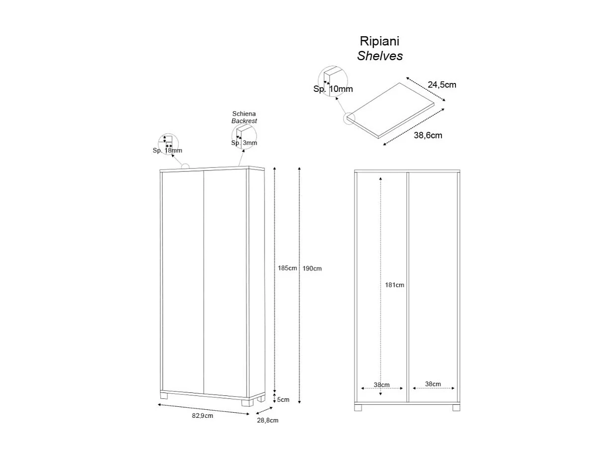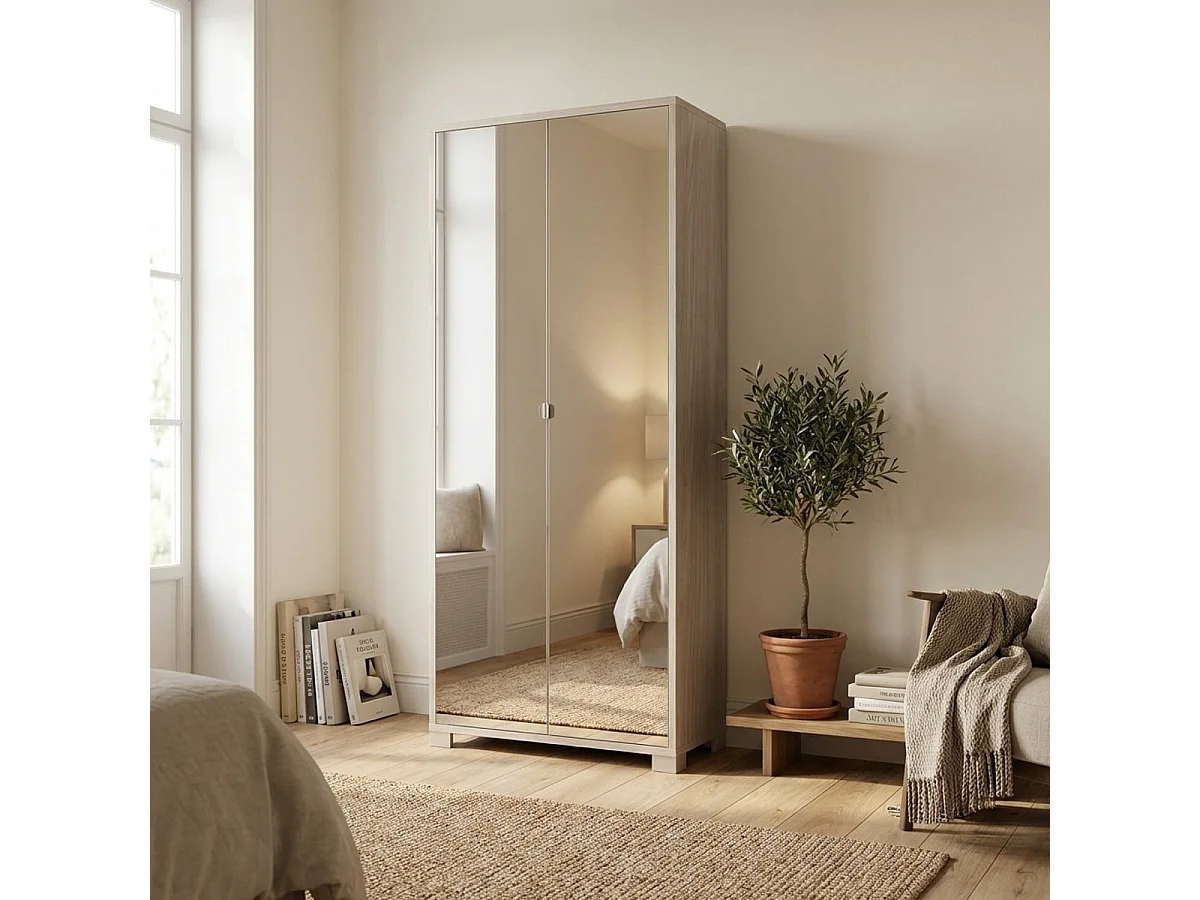 Multifunktionsschrank mit Spiegeltüren 2-türig 8 verstellbare Einlegeböden Arlan - Ulme
