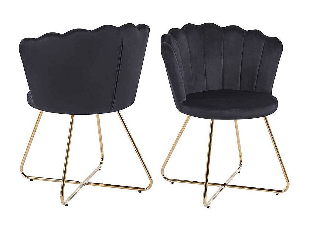 Muschelstühle Schwarz aus Samt Gestell aus Metall (2er Set)