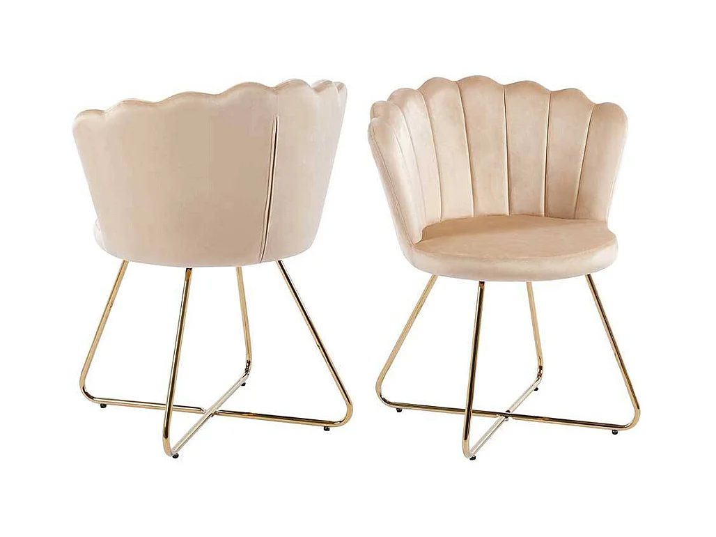 Muschelstuhl Set Beige Gold aus Samt und Metall 70 cm breit (2er Set)