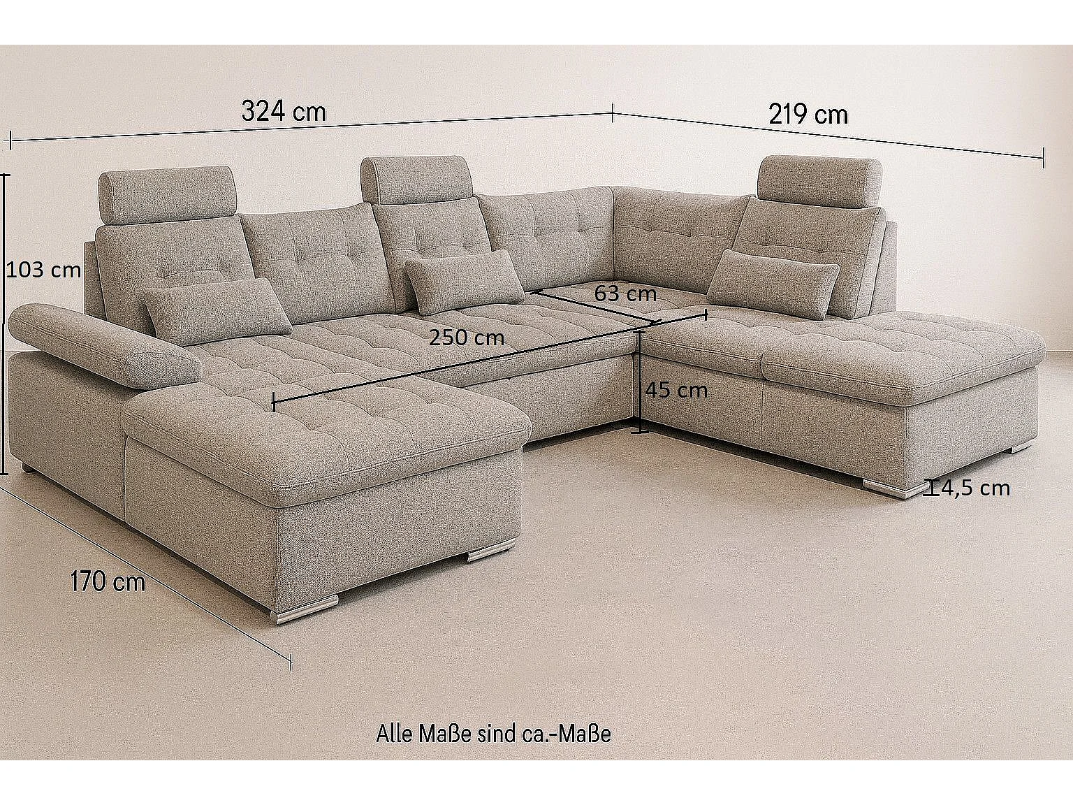MYHOMELANDO Brest Wohnlandschaft – U-Form mit Schlaffunktion und Bettkasten