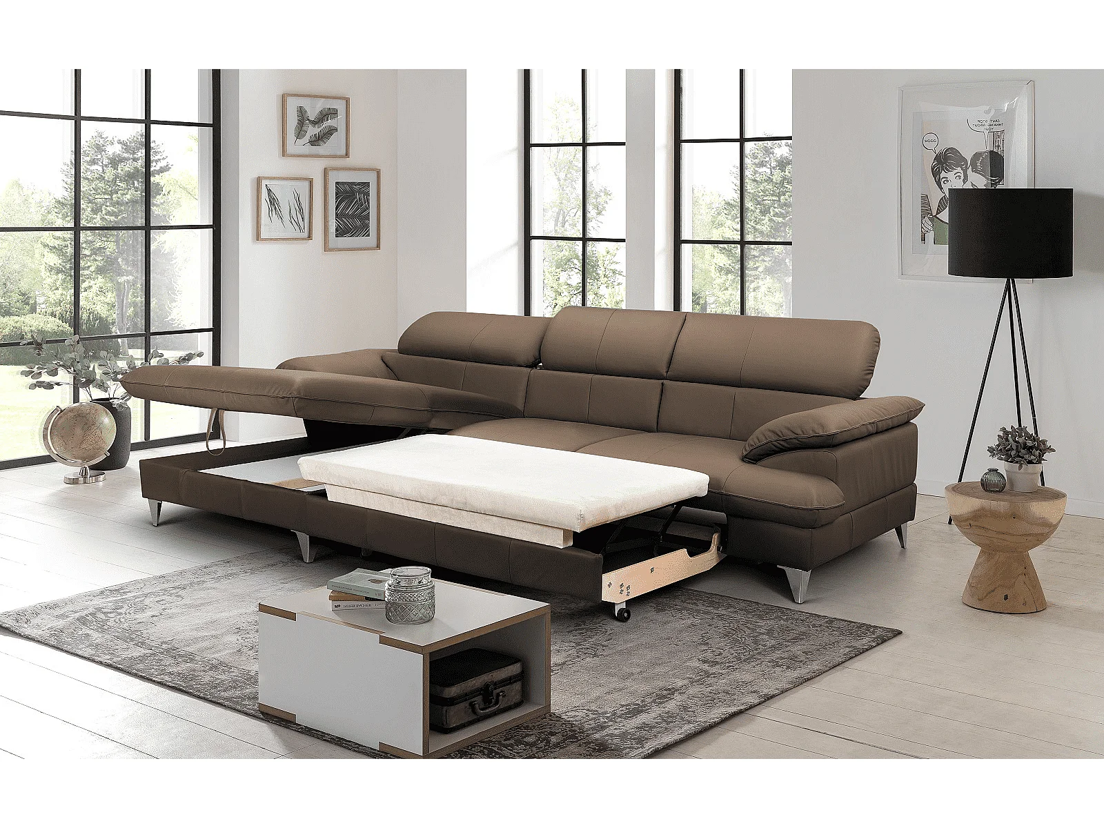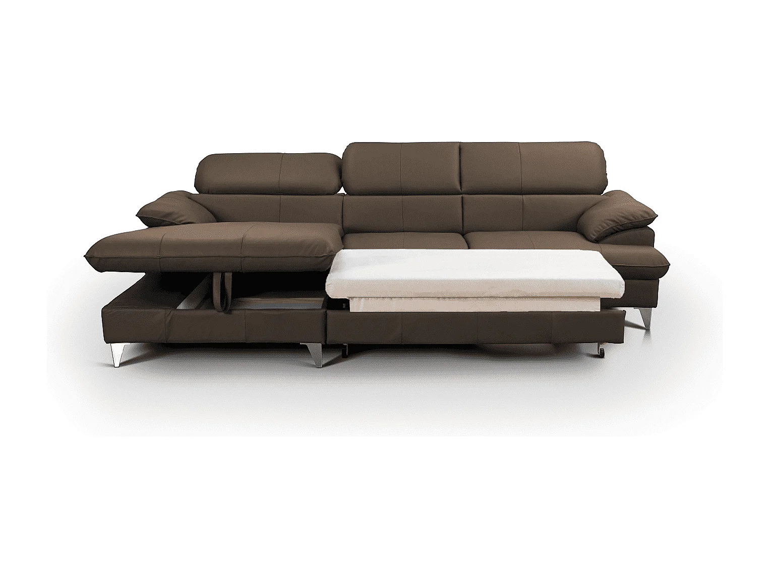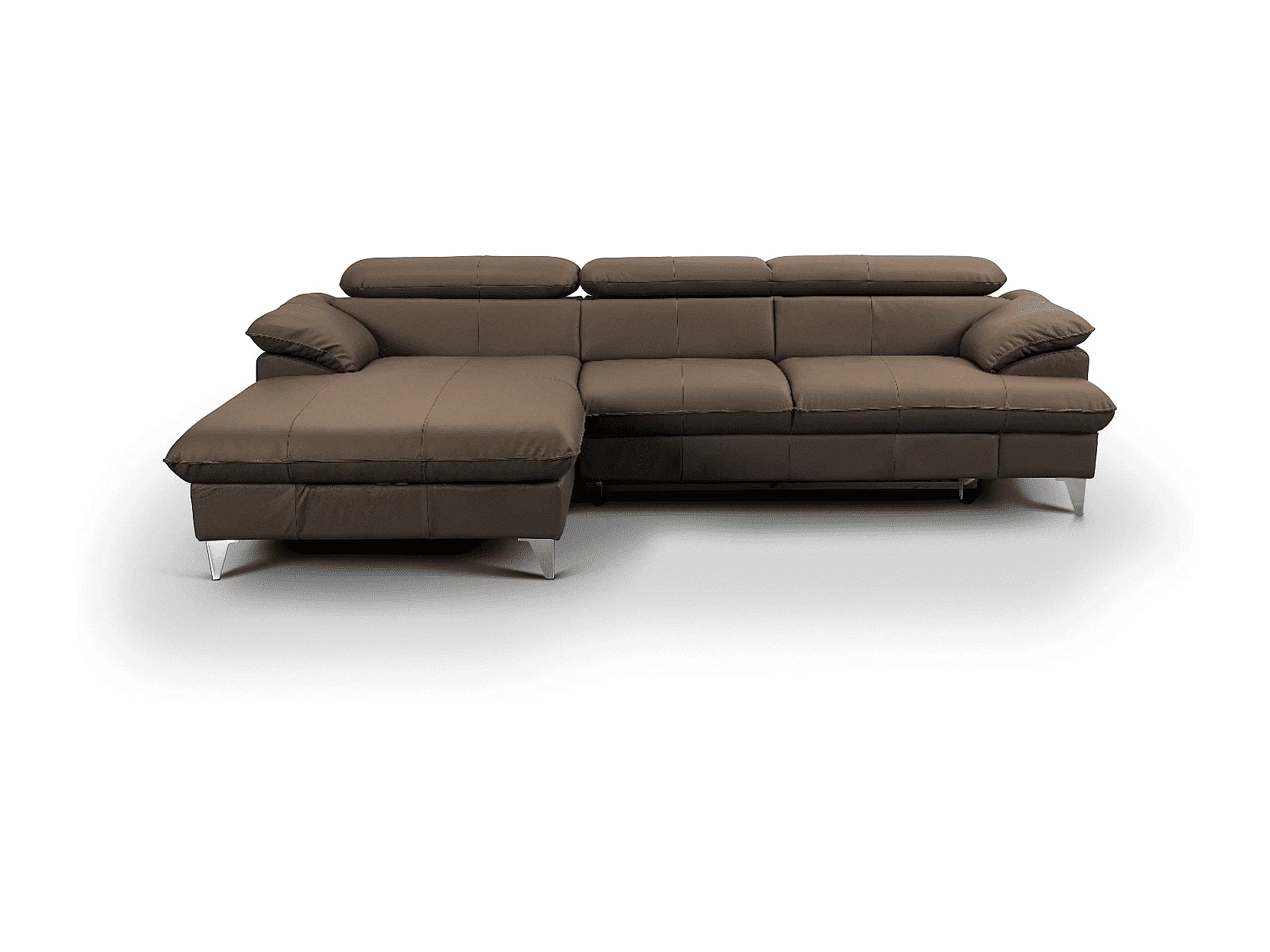 MYHOMELANDO David Ecksofa Echtleder – L-Form mit Schlaffunktion, Bettkasten und verstellbaren Kopfstützen