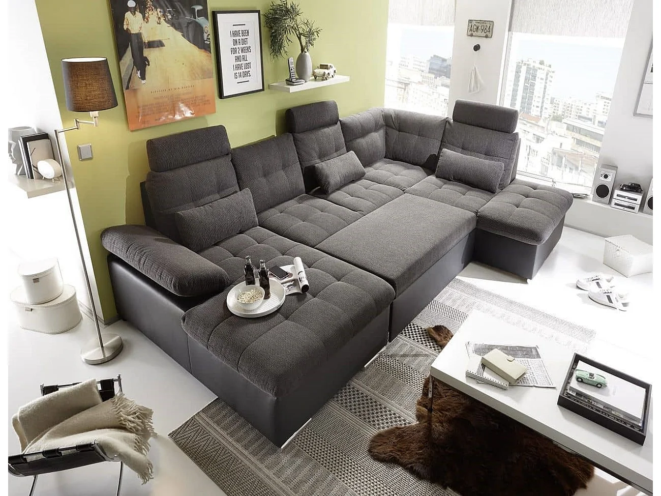 MYHOMELANDO Jakarta Wohnlandschaft – U-Form mit Schlaffunktion und Bettkasten