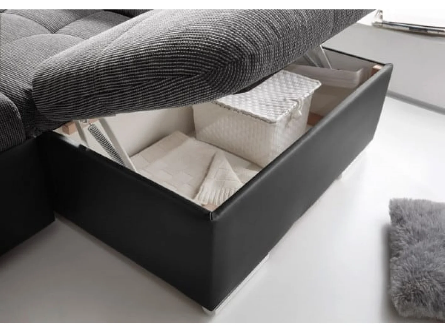 MYHOMELANDO Jakarta Wohnlandschaft – U-Form mit Schlaffunktion und Bettkasten