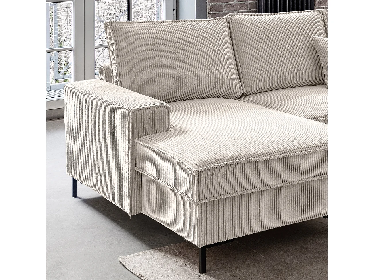 MYHOMELANDO Jerome Wohnlandschaft – U-Form Schlaffunktion und Bettkasten, Cordstoff