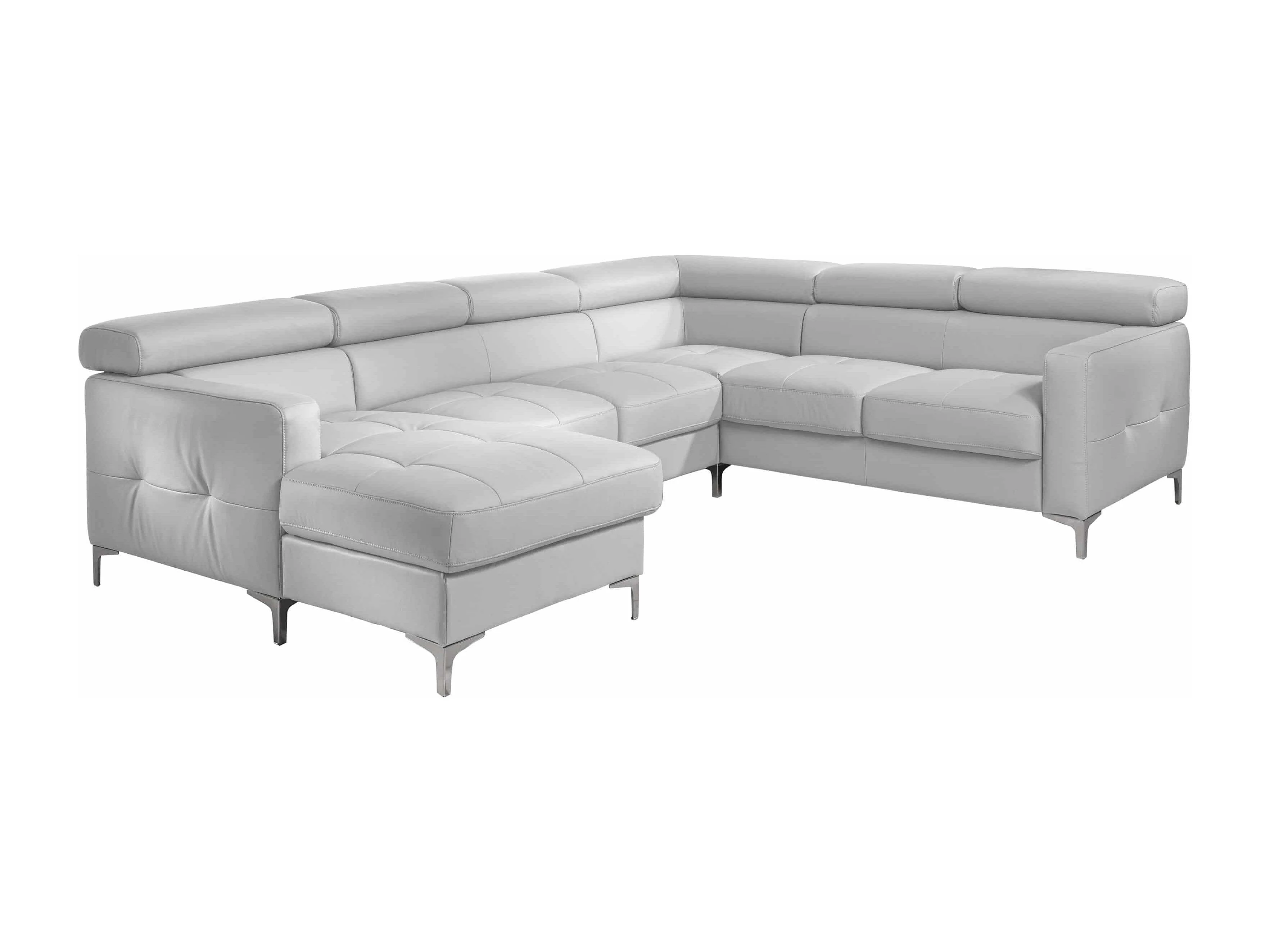 MYHOMELANDO Sammy Echtleder Wohnlandschaft – U-Form mit Schlaffunktion, Bettkasten und verstellbaren Kopfstützen