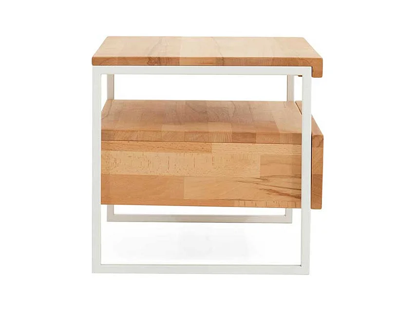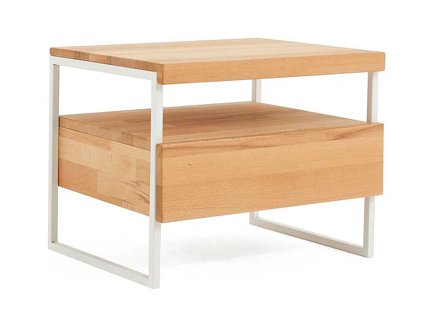 Nachtkommode aus Kernbuche Massivholz Metall Weiß