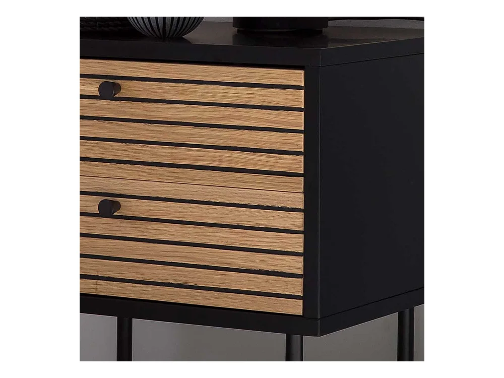 Nachtkommode in Eichefarben und Schwarz Vierfußgestell