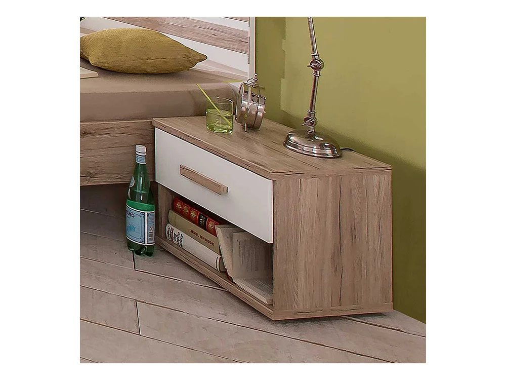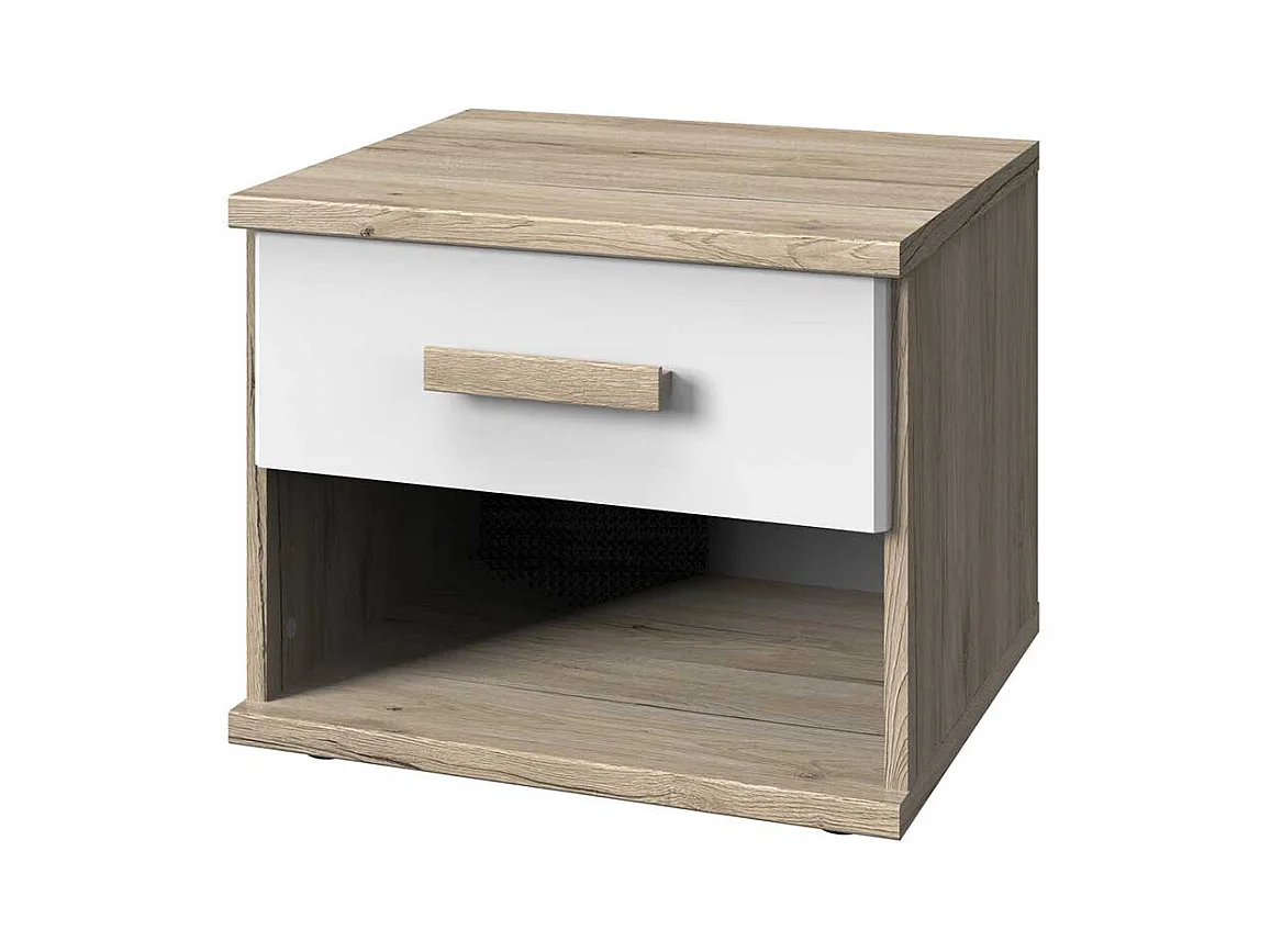 Nachtkommode mit Schublade in Eiche San Remo und Weiß 46 cm breit