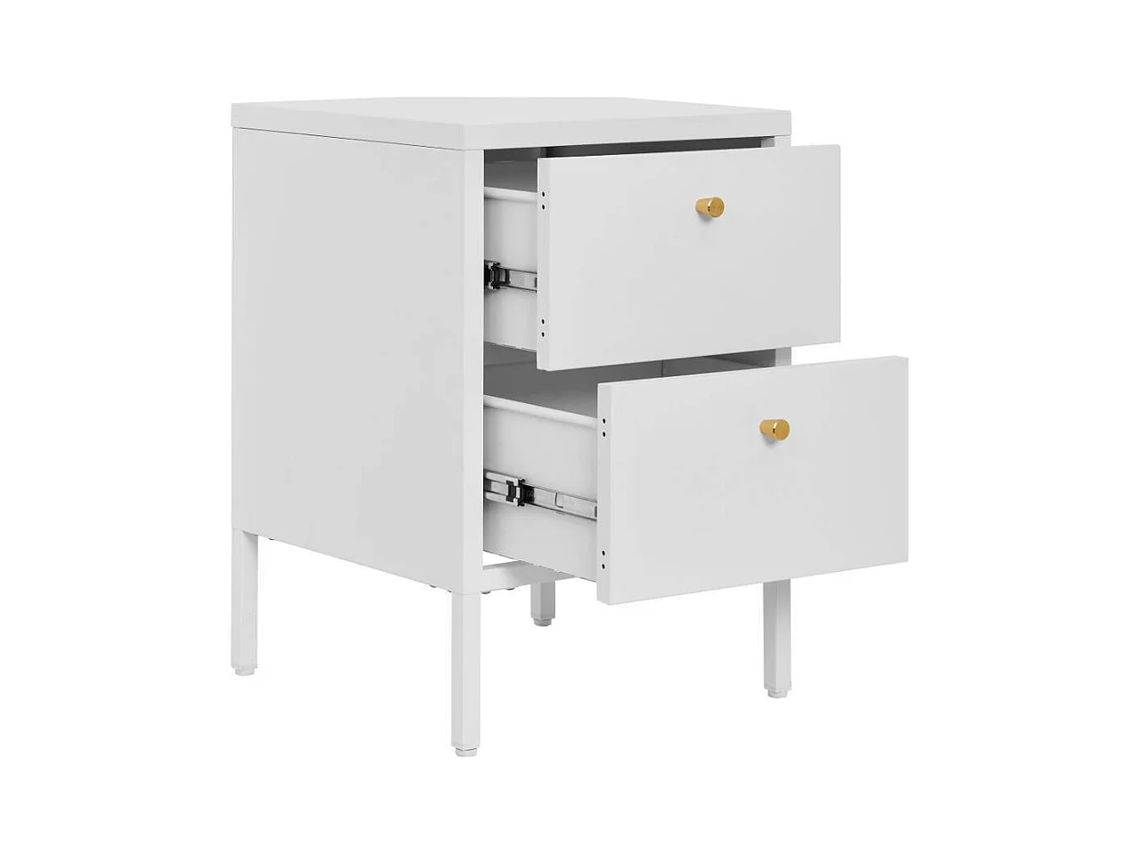 Nachtkommode Nachtschrank in Weiß mit Vierfußgestell aus Metall