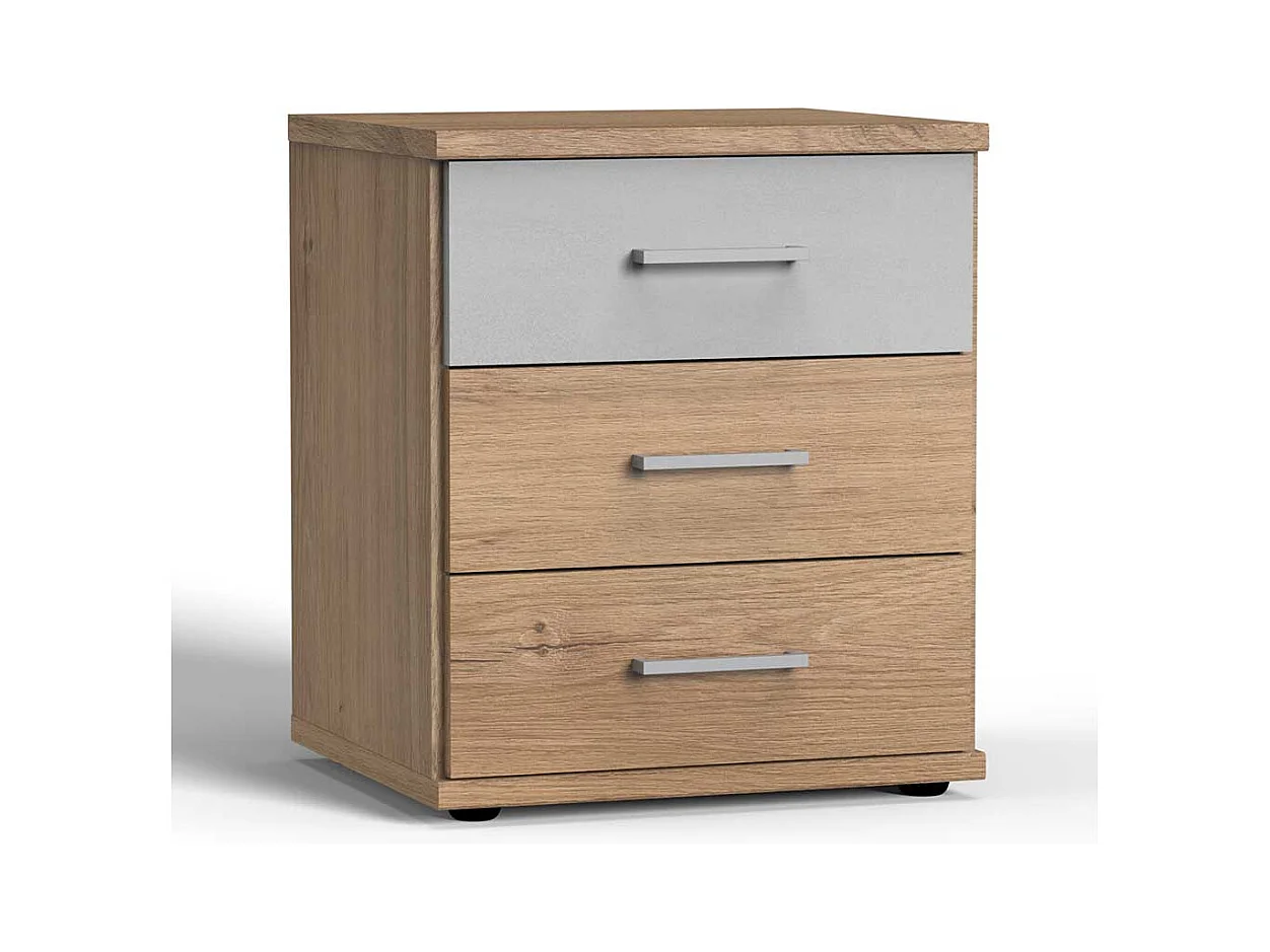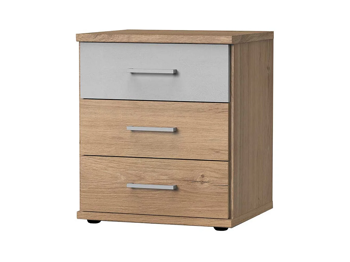 Nachtkommode zweifarbig in Eichefarben und Beton Lichtgrau 46 cm breit
