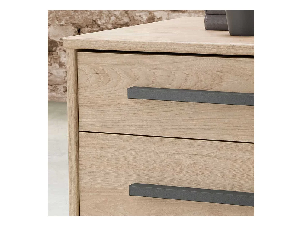 Nachtkommoden in Eichefarben und Dunkelgrau LED Beleuchtung