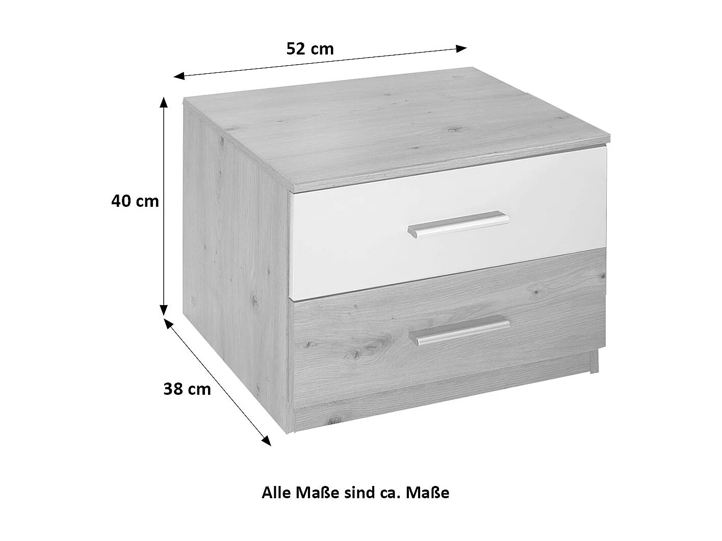 NACHTKONSOLE 2ER SET Katrin Plankeneiche / weiß 52 / 38 / 42cm