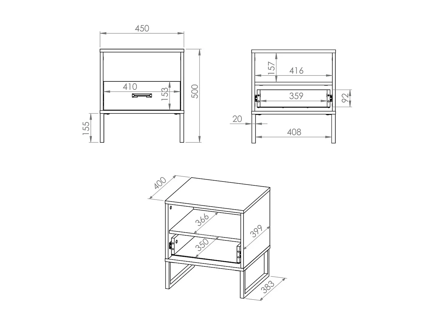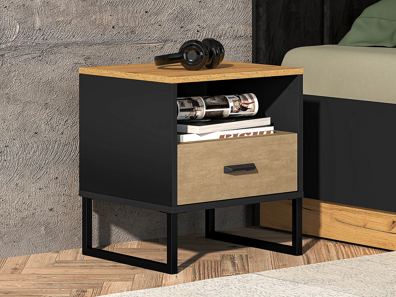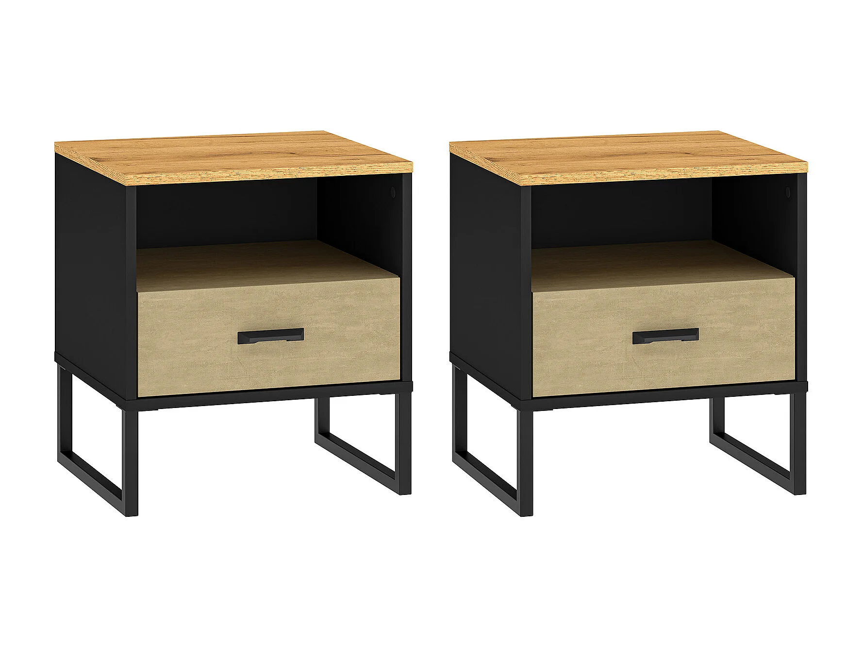 NACHTKONSOLE Colt schwarz / Craft Gold Eiche / Premium Steel 45 / 40 / 50cm (2er-Set)