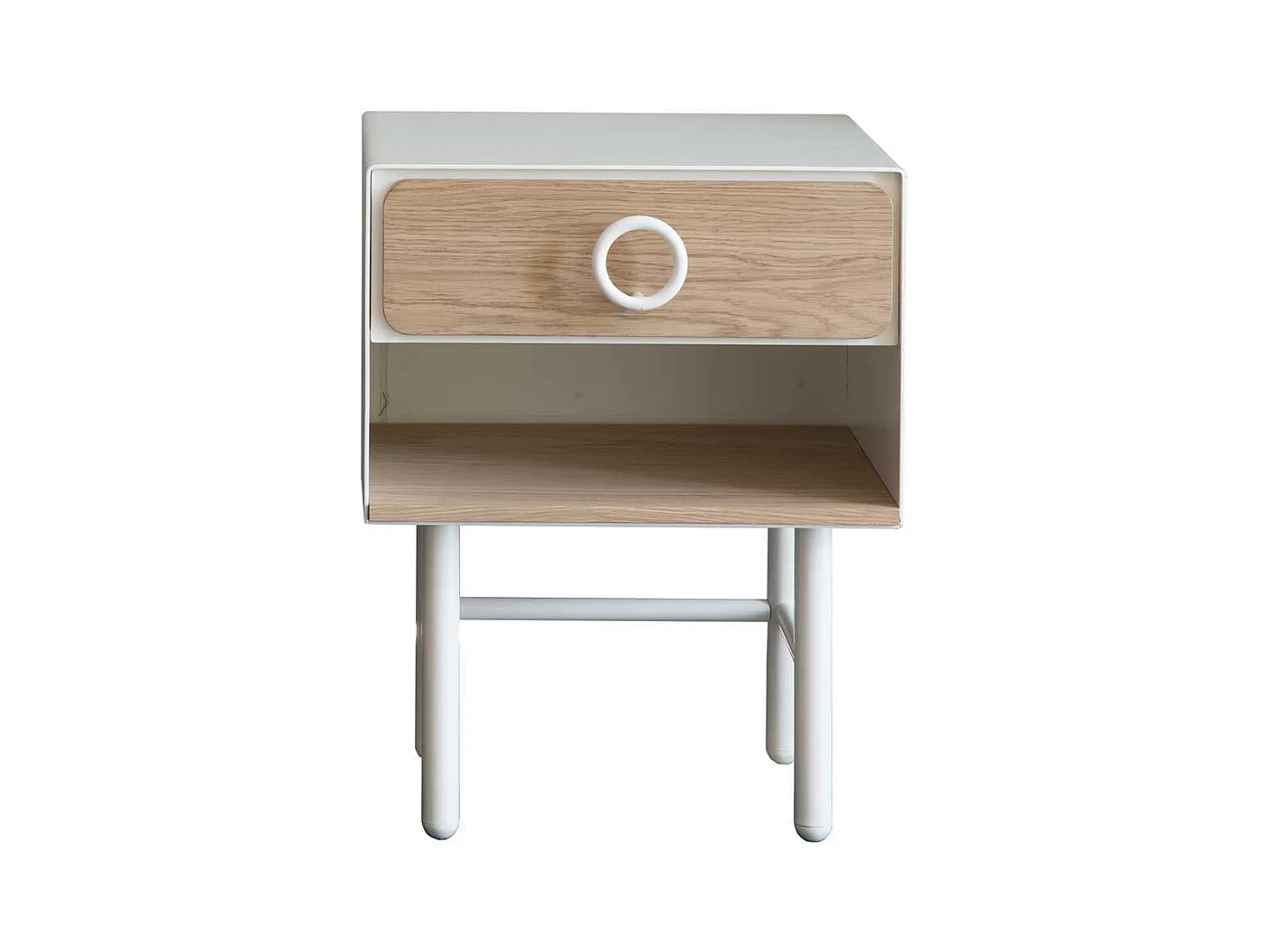 Nachtkonsole in Weiß und mit Eiche Echtholz Furnier 40 cm breit