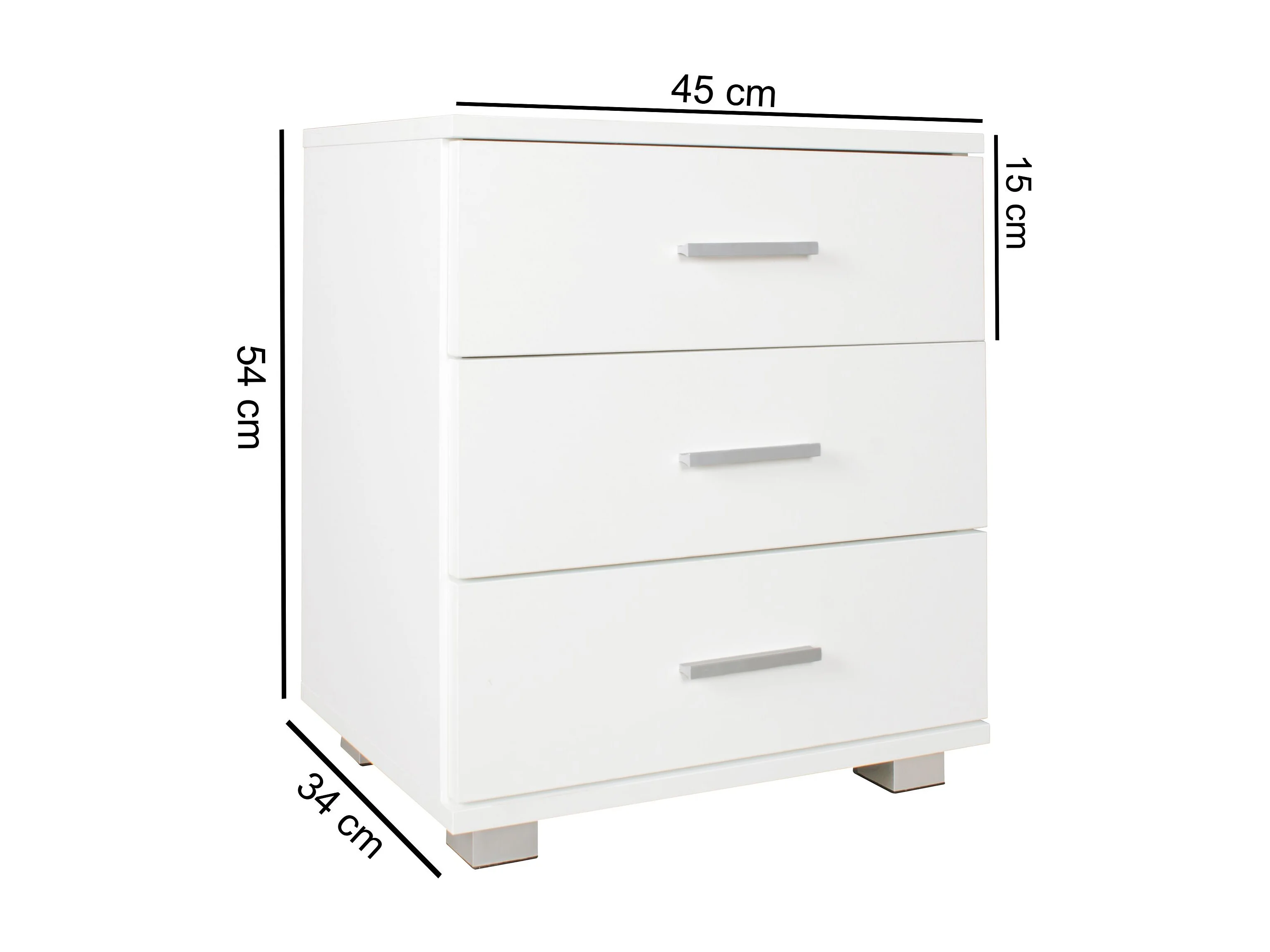 Nachtkonsole LATINA Holz Nachttisch modern mit 3 Schubladen weiss, Design Nachtkästchen 45 x 54 x