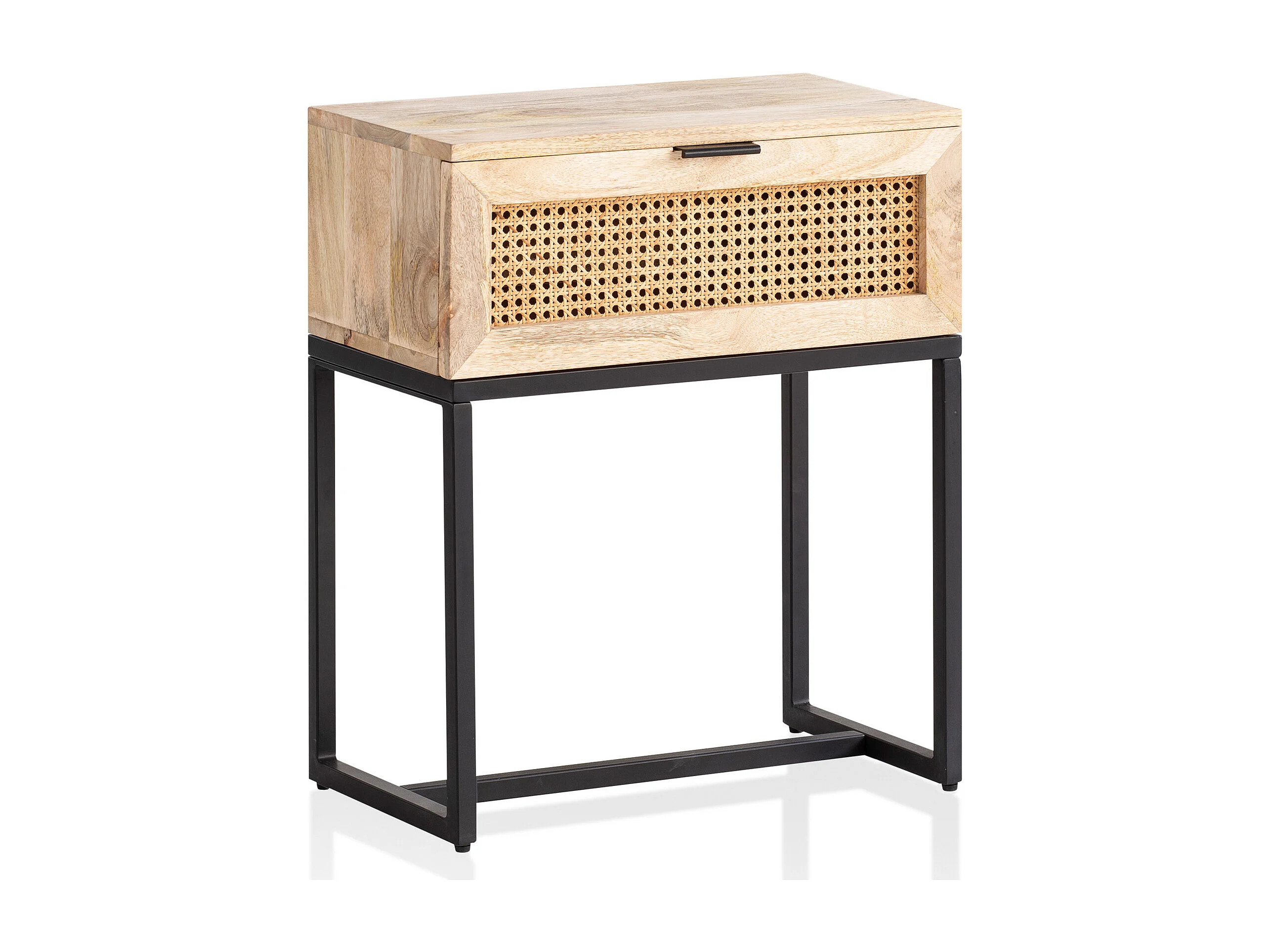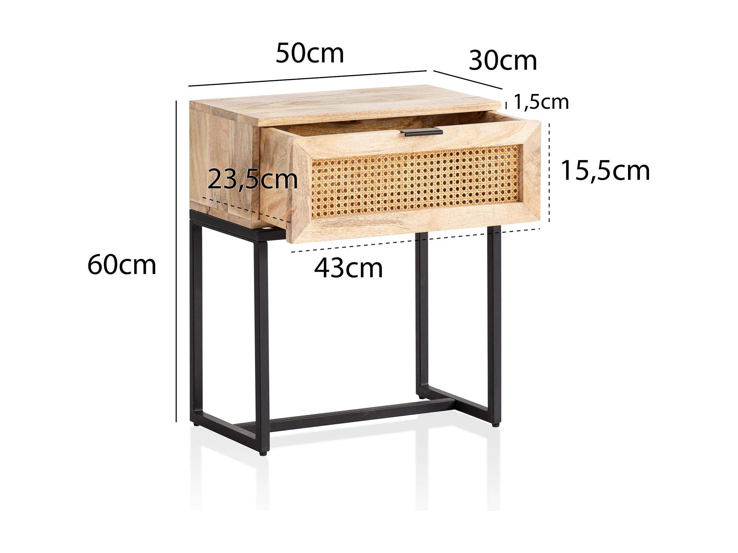 Nachtkonsole Mango Massivholz / Rattan 50x60x30 cm Nachttisch Braun, Nachtkommode Boxspringbett
