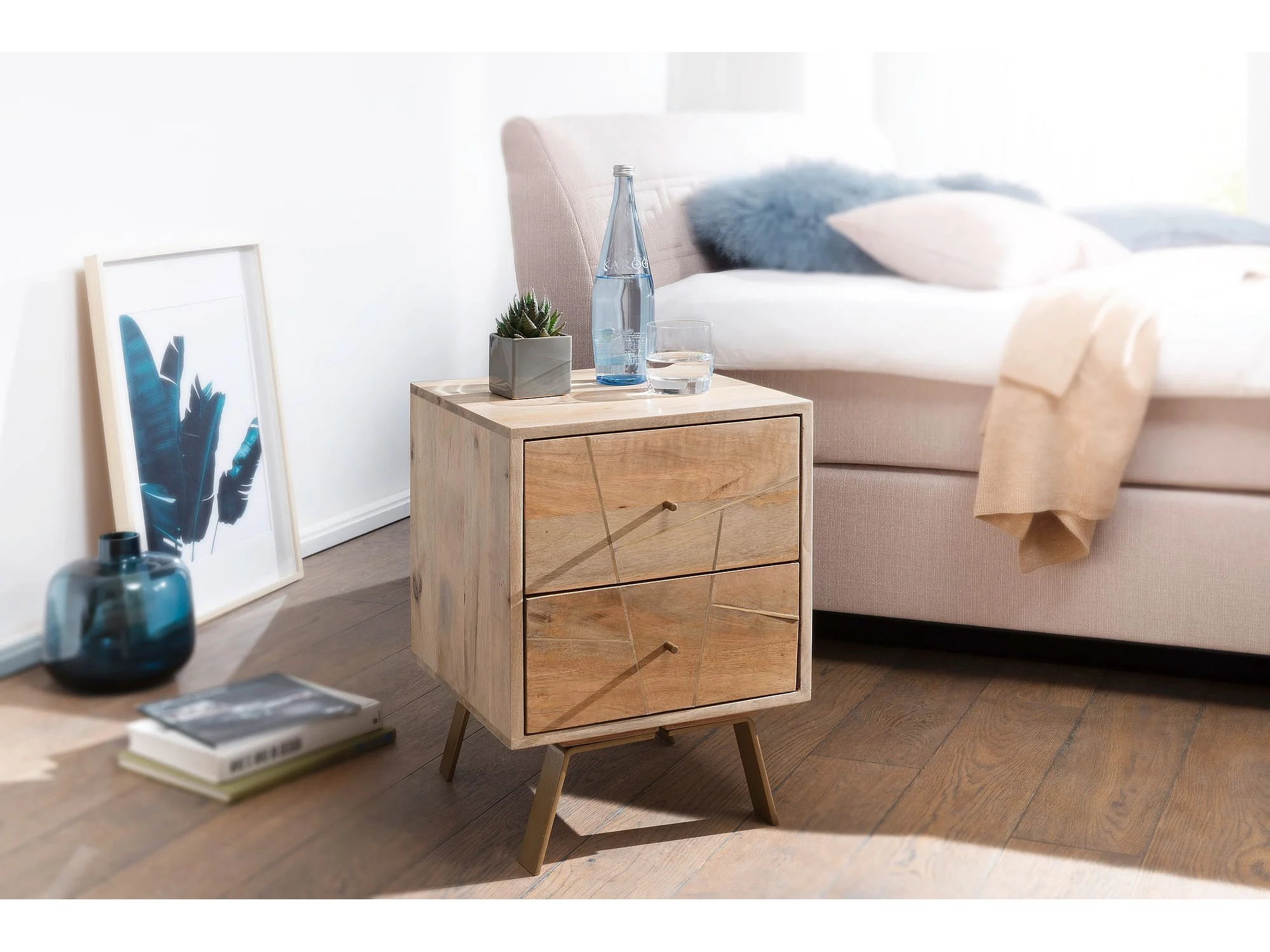 Nachtkonsole SIKAR 40x56x40cm Mango Massivholz Nachtschrank Hoch, Landhaus Nachtkommode