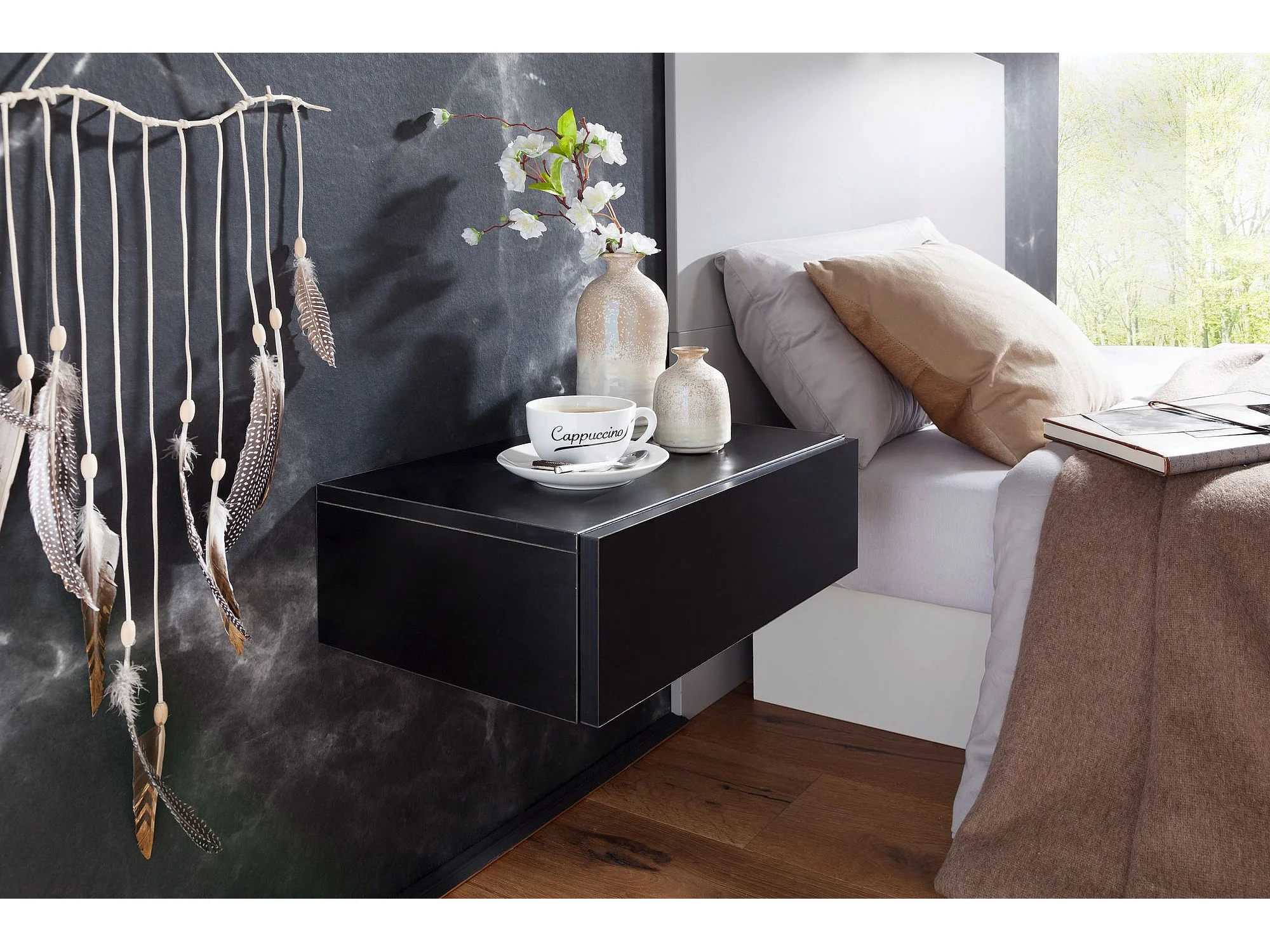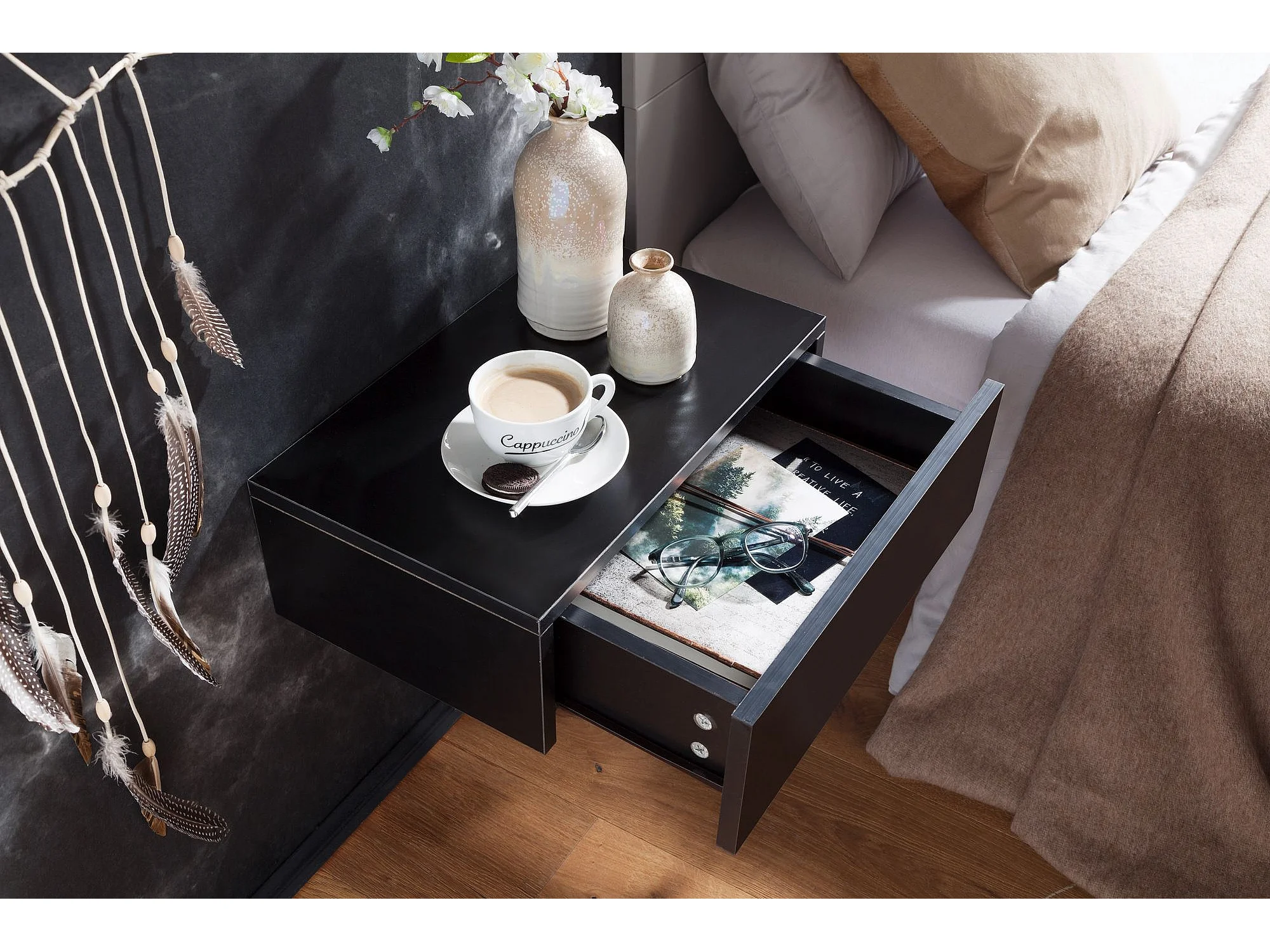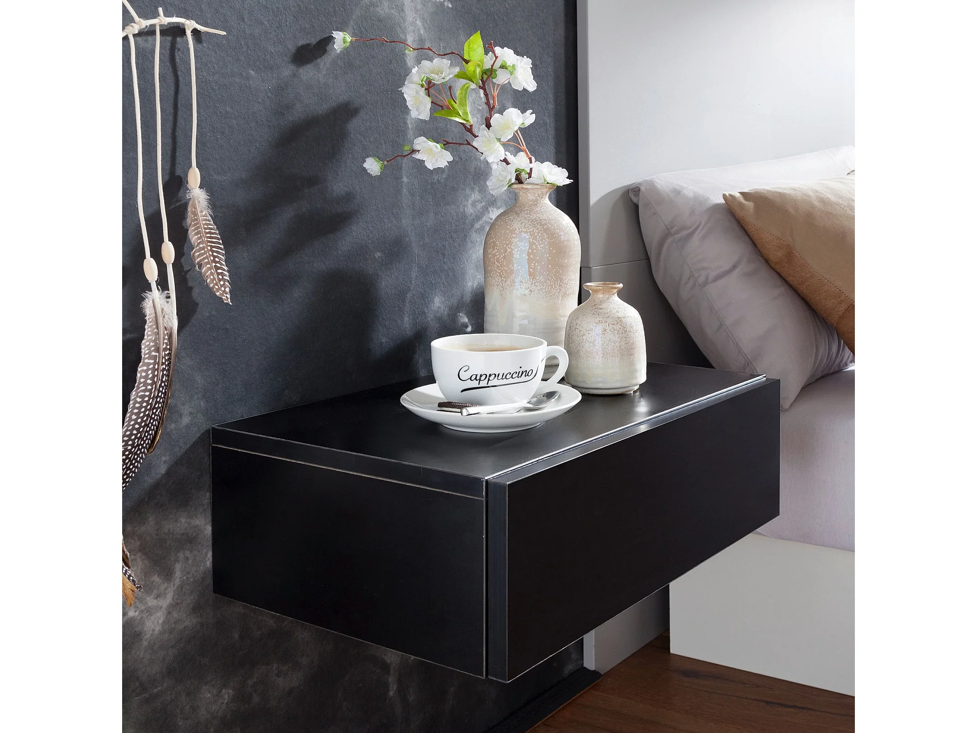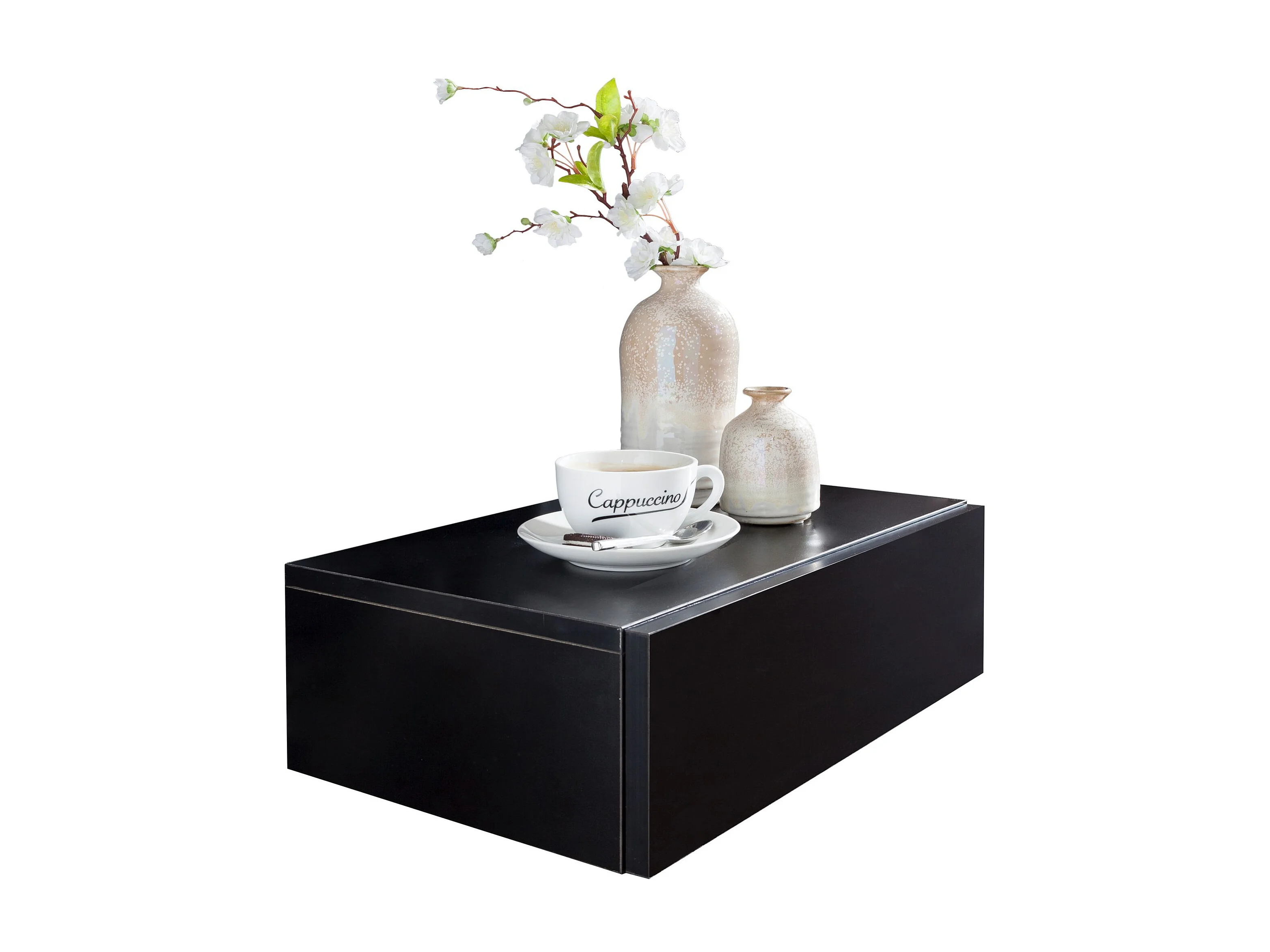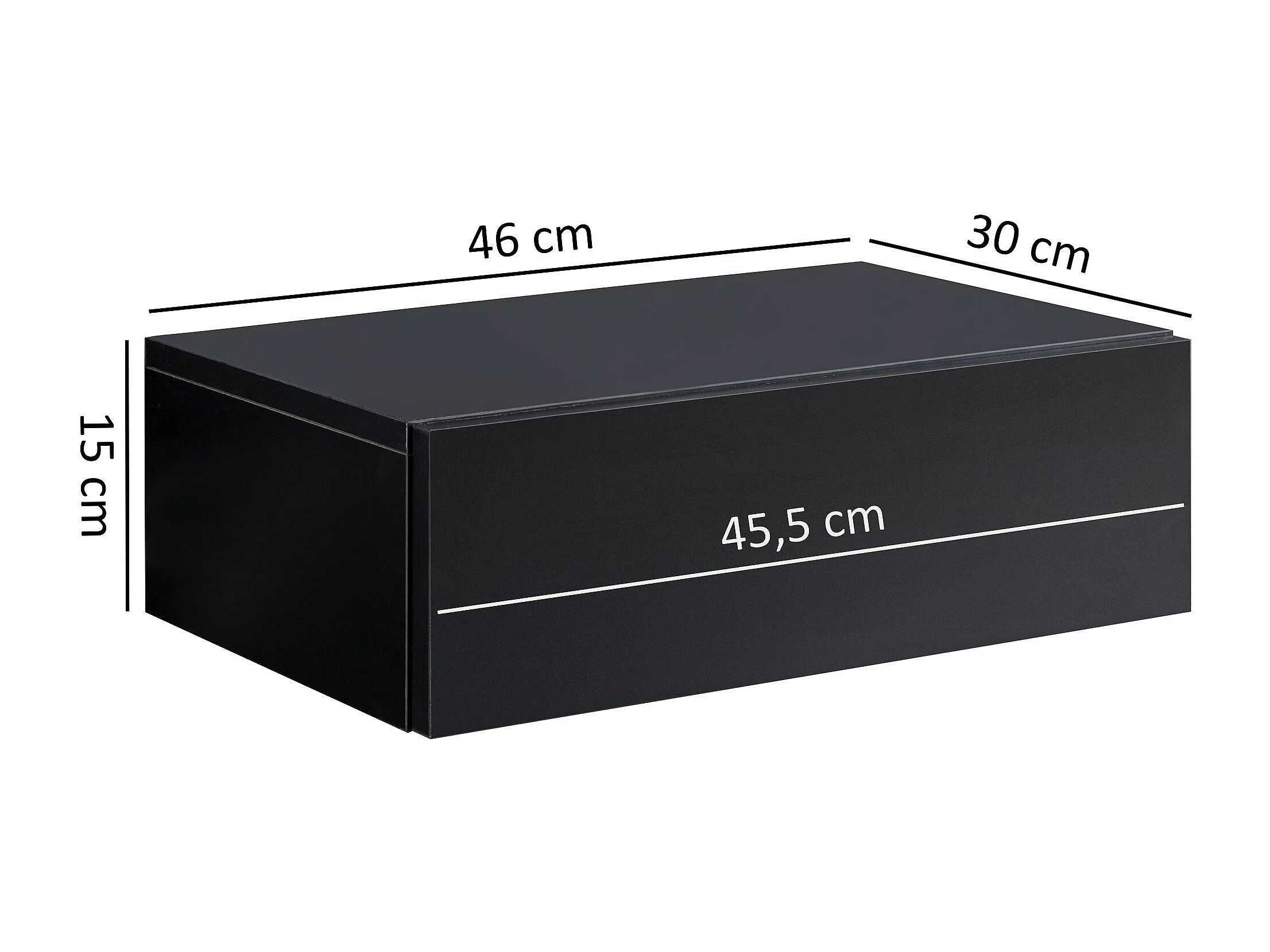 Nachtkonsole ZADAR für Wandmontage 46x15x30cm Schwarz Nachttisch Holz, Wandregal mit Schublade,